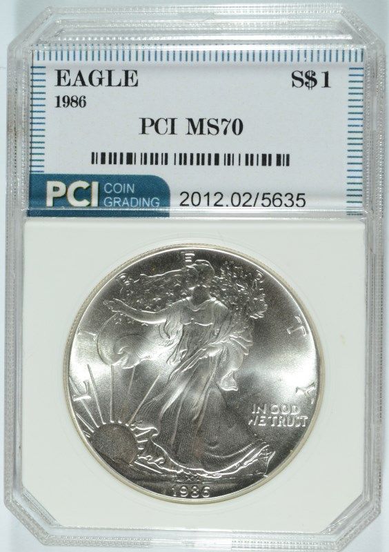 1986 AMERICAN SILVER EAGLE, PCI MS-70  RARE  TRENDS PRICE $450.00