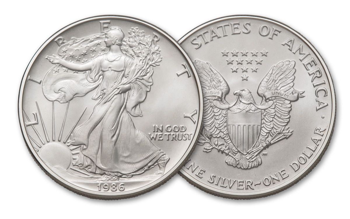 One 1986 American Silver Eagle .999 Fine Silver Dollar Coin.