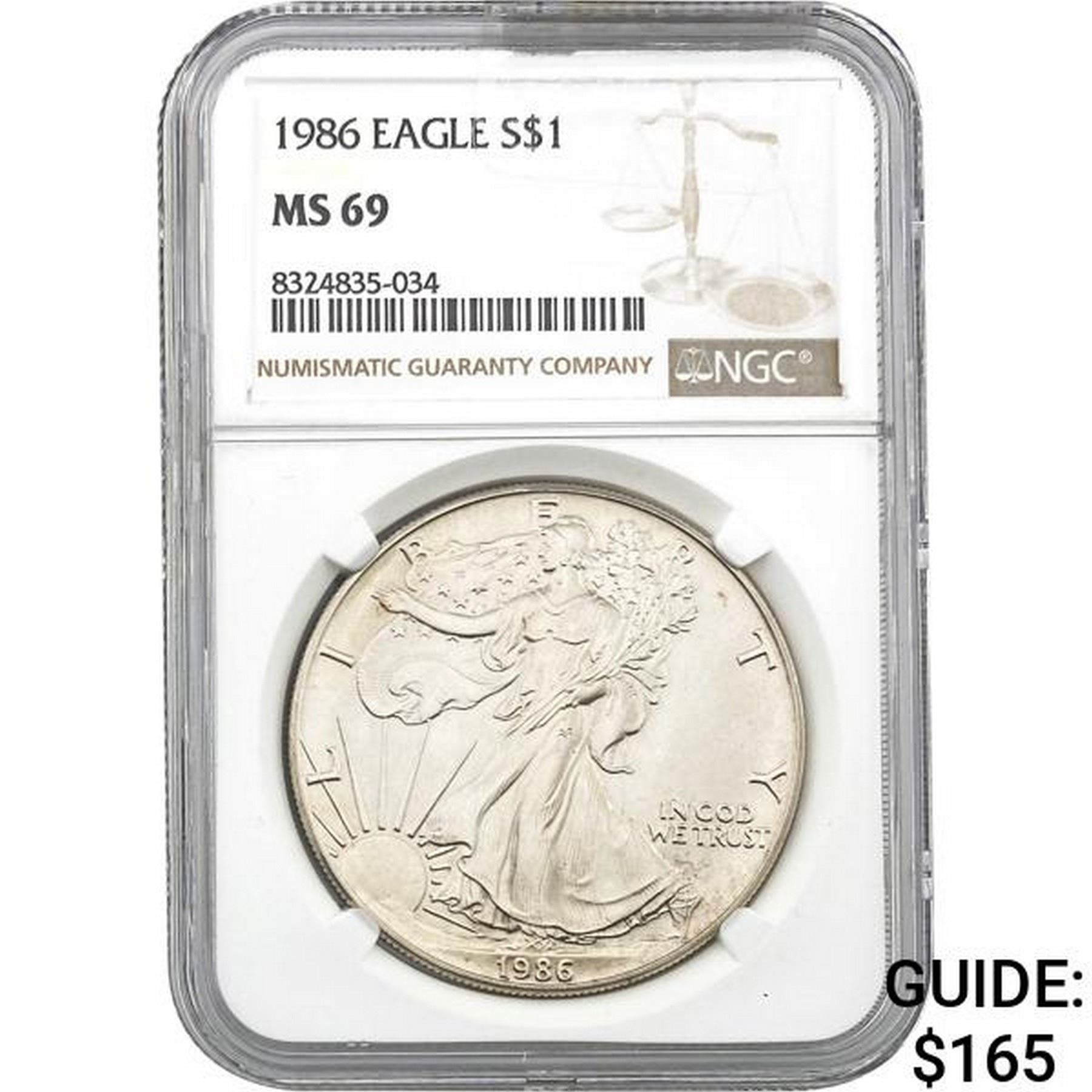 1986 American Silver Eagle NGC MS69