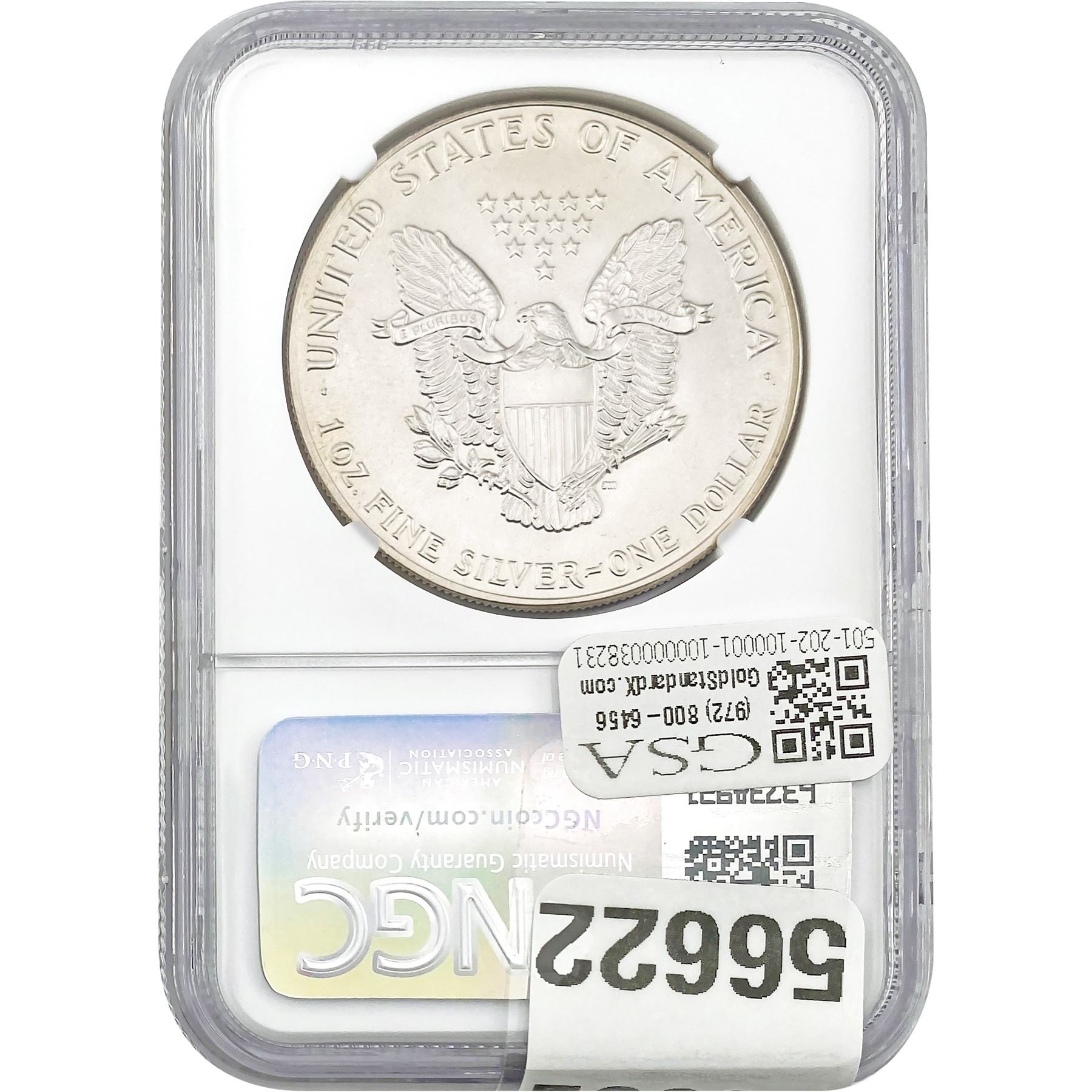 e. Coins sold referencing a third-party grading service are sold “AS IS” without any express or implied warranty, except for a guarantee by GSA that they are genuine. Removal or alteration of the holder, voids all of Bidder’s claims concerning that Product. Certain warranties may be available from the grading services and Bidders are referred to them for further details: Numismatic Guaranty Corporation (NGC), PO Box 4776, Sarasota, FL 34230, www.ngccoin.com/services/writtenguarantee.asp; Professional Coin Grading Services (PCGS), PO Box 9458, Newport Beach, CA 92658, www.pcgs.com/guarantee.html; ANACS, 6555 S. Kenton St., Ste. 303, Englewood, CO 80111; and Independent Coin Grading Co. (ICG), 7901 East Bellview, Ave., Suite 50, Englewood, CO 80111.