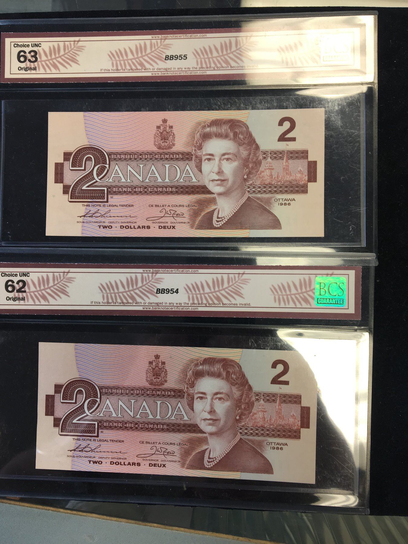 NICE LOT OF 2 GRADED $2 NOTES..CHOICE UNC-63 AND CHOICE UNC-62