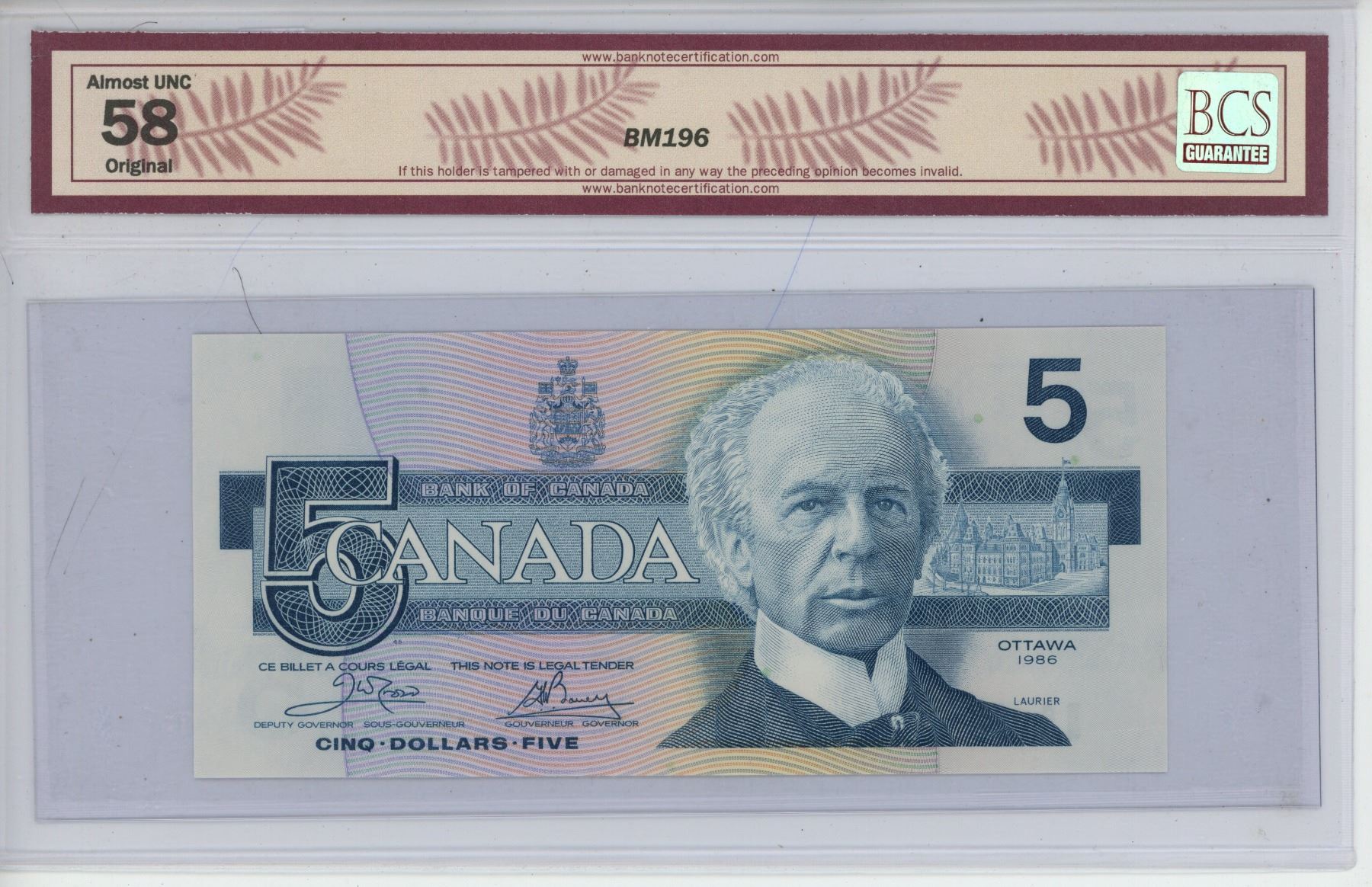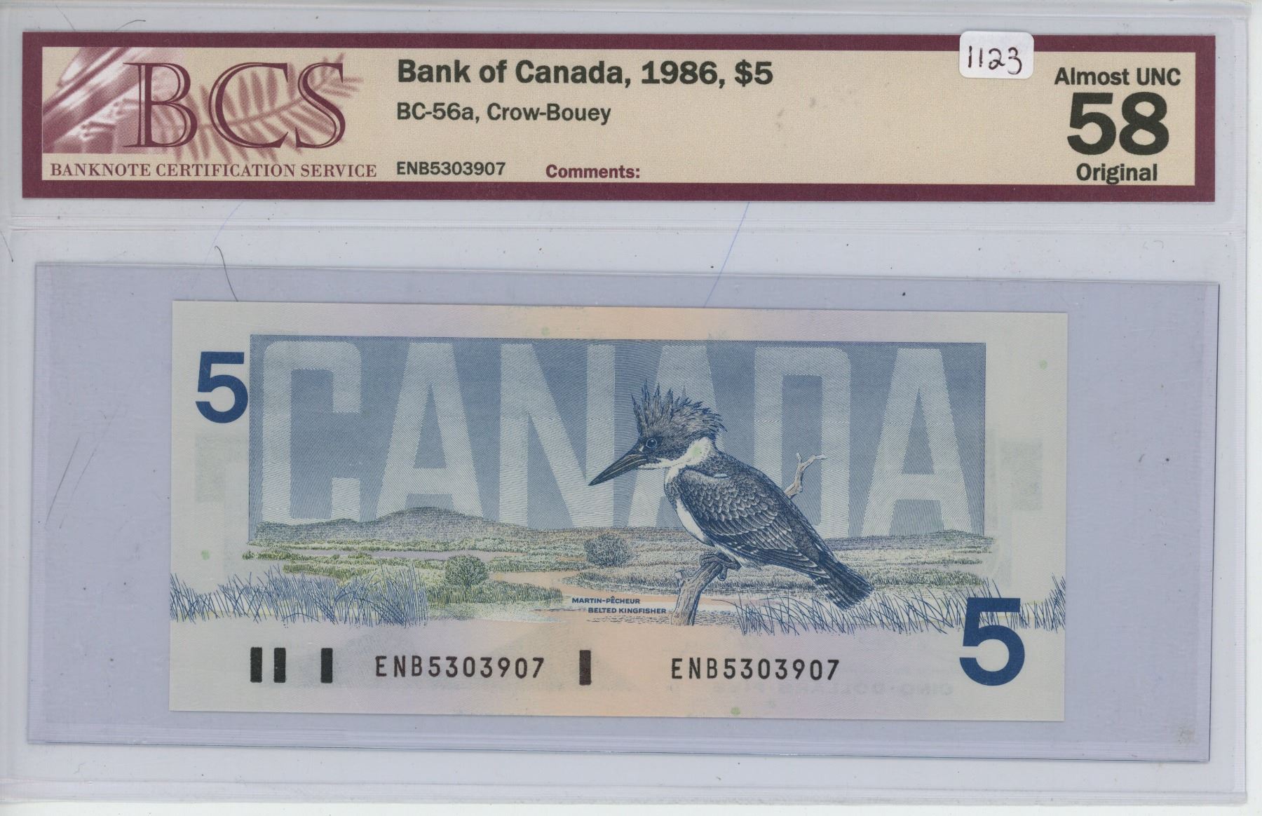 1986 BC-56a 5 dollar, Crow-Bouey, ENB5303907 Almost UNC-58 Original