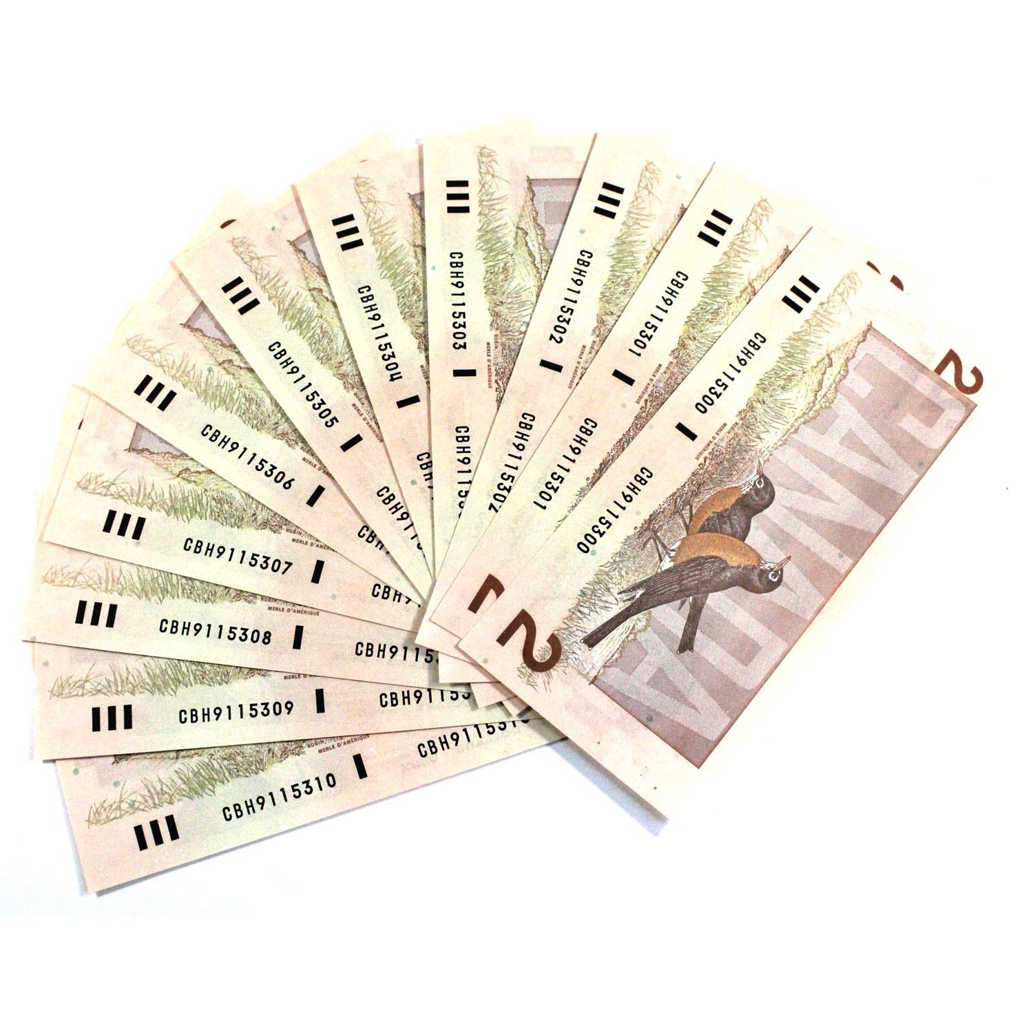 1986 Bank of Canada $2 Notes Bonin-Thiessen Signatures Scarce Prefix CBH with Consecutive Serial Numbers CBH9115300-310 UNC. 11pcs