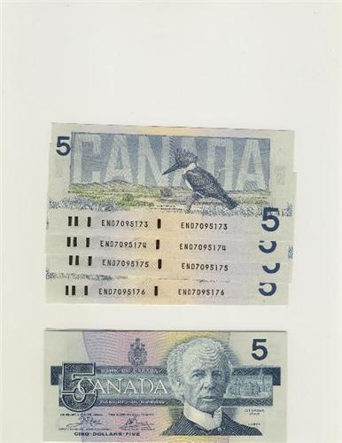 1986 Bank of Canada $5.00 Sequence-Unc
