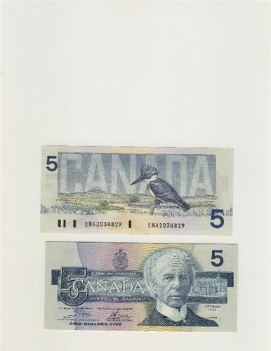 1986 Bank of Canada $5.00 -Unc