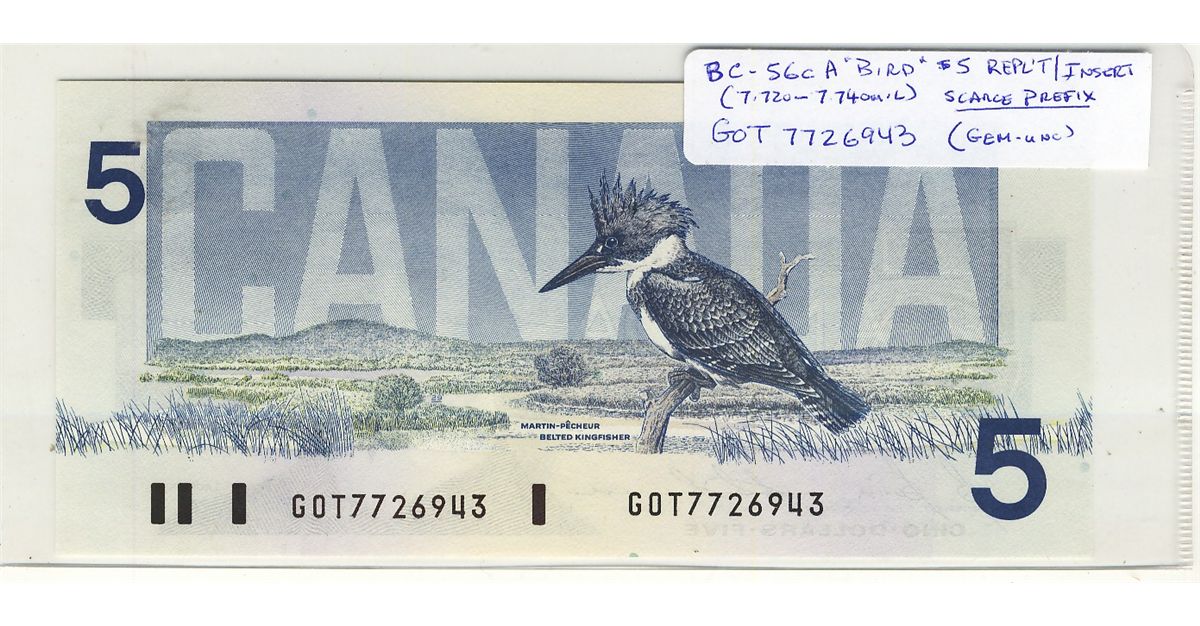 1986 Bank of Canada; 5 Dollars BC-56c #GOT7726943 UNC.