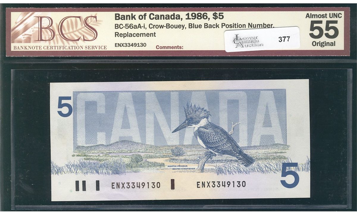 1986 Bank of Canada; 5 Dollars Choice BCS AU-55, BC-56aA-i #ENX3349130.