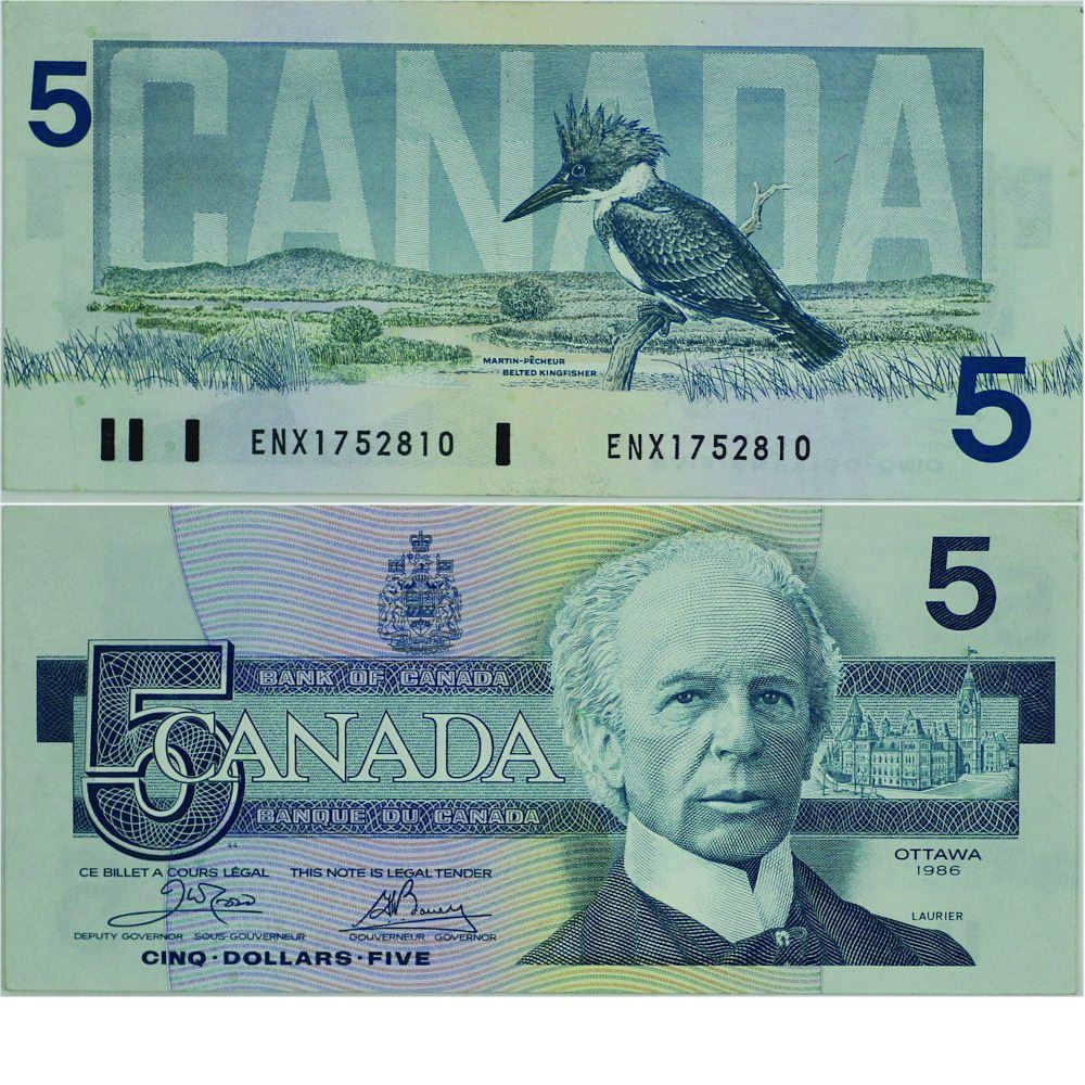 1986 Bank of Canada $5 Replacement note. BC-56aA, ENX with Yellow BPN, EF. S/N: ENX1752810