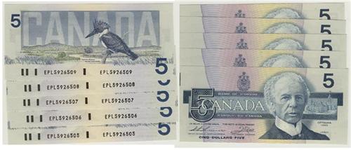 5 Sequential crisp uncs. Bird series # EPL5926505-EPL5926509, Thiessen-Crow. BC-56b, no return.