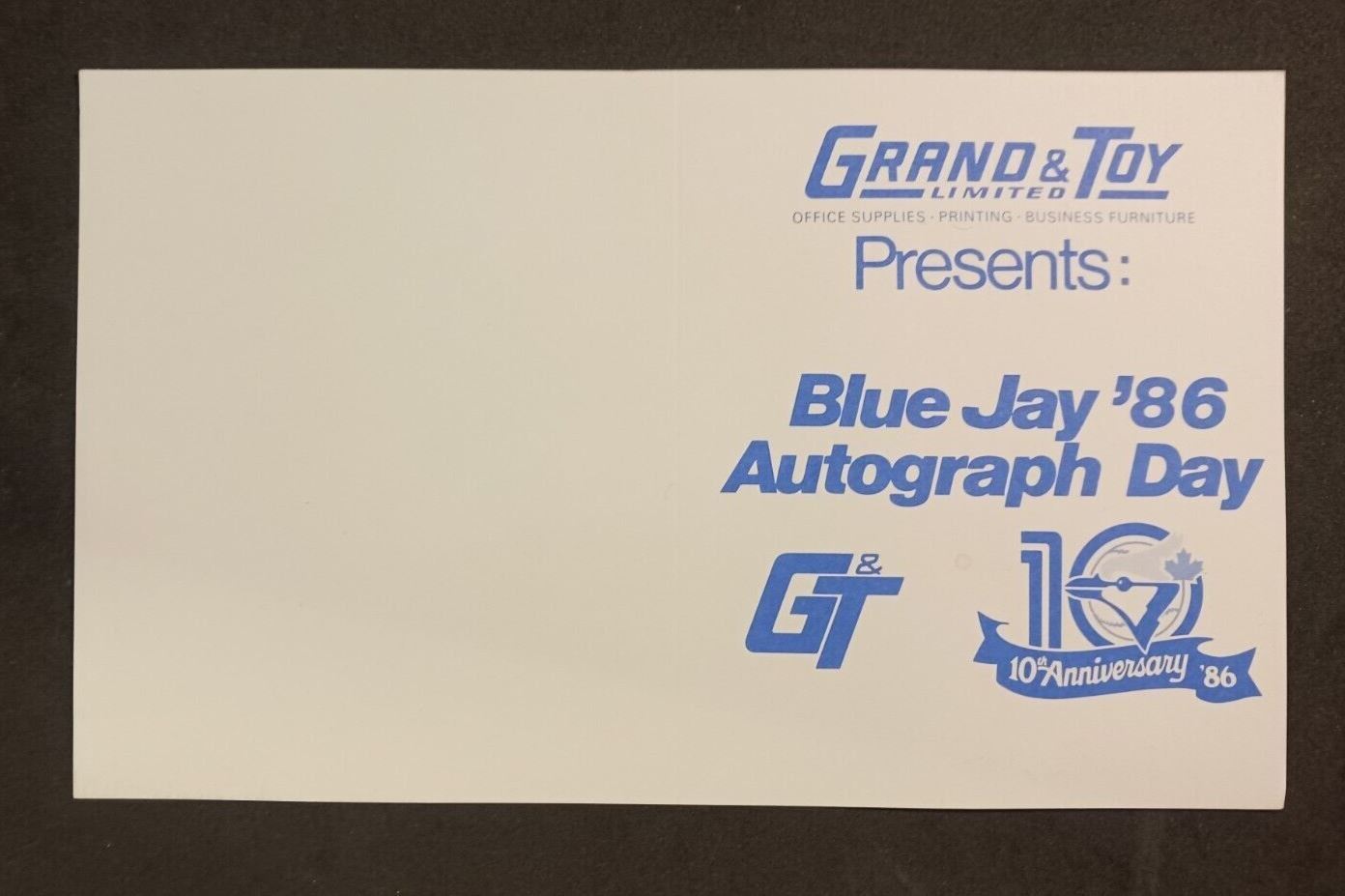 1986 Blue Jays Day Card Presented by Grand & Toy