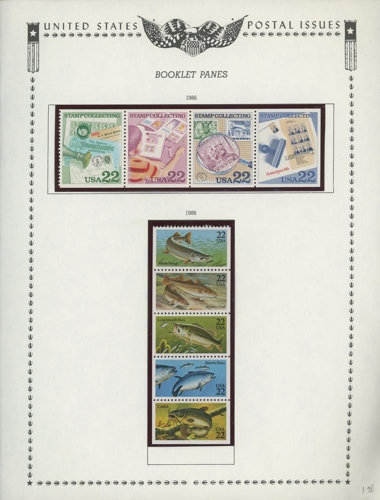 1986 4 x 22c Stamp Collecting U.S. #2201b; 1986 Fish Booklet Pane of 5 x 22 Cents Stamps Scott 2209a