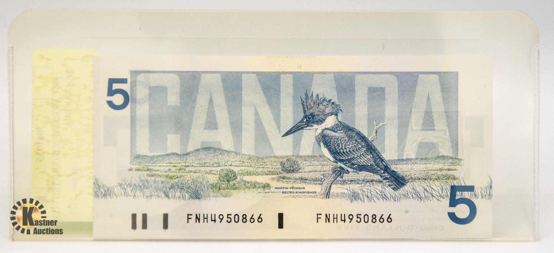 1986 CANADA UNCIRCULATED FIVE DOLLAR BILL