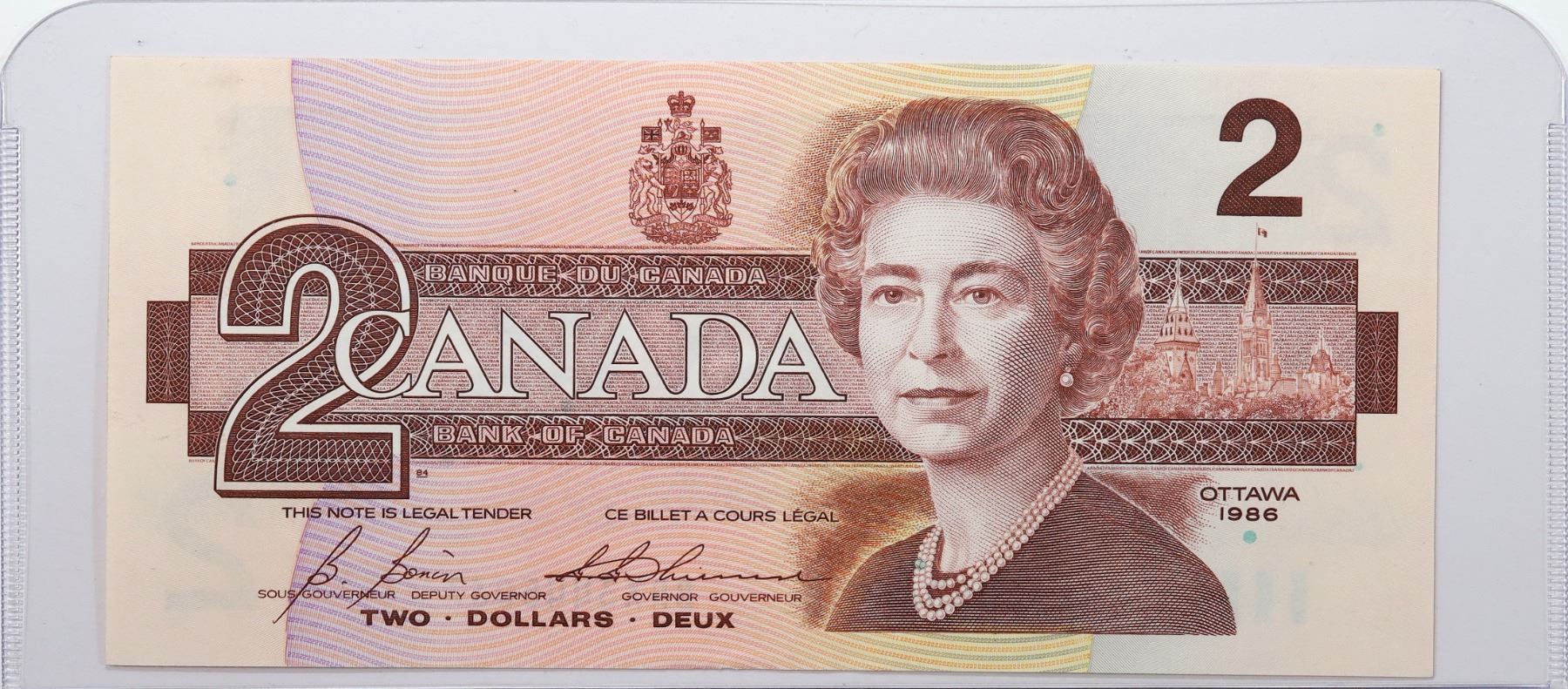 1986 Canada $2 BC-55cA; Bonin-Thiessen, Replacement (Circulation issue), BRX3445067; UNC