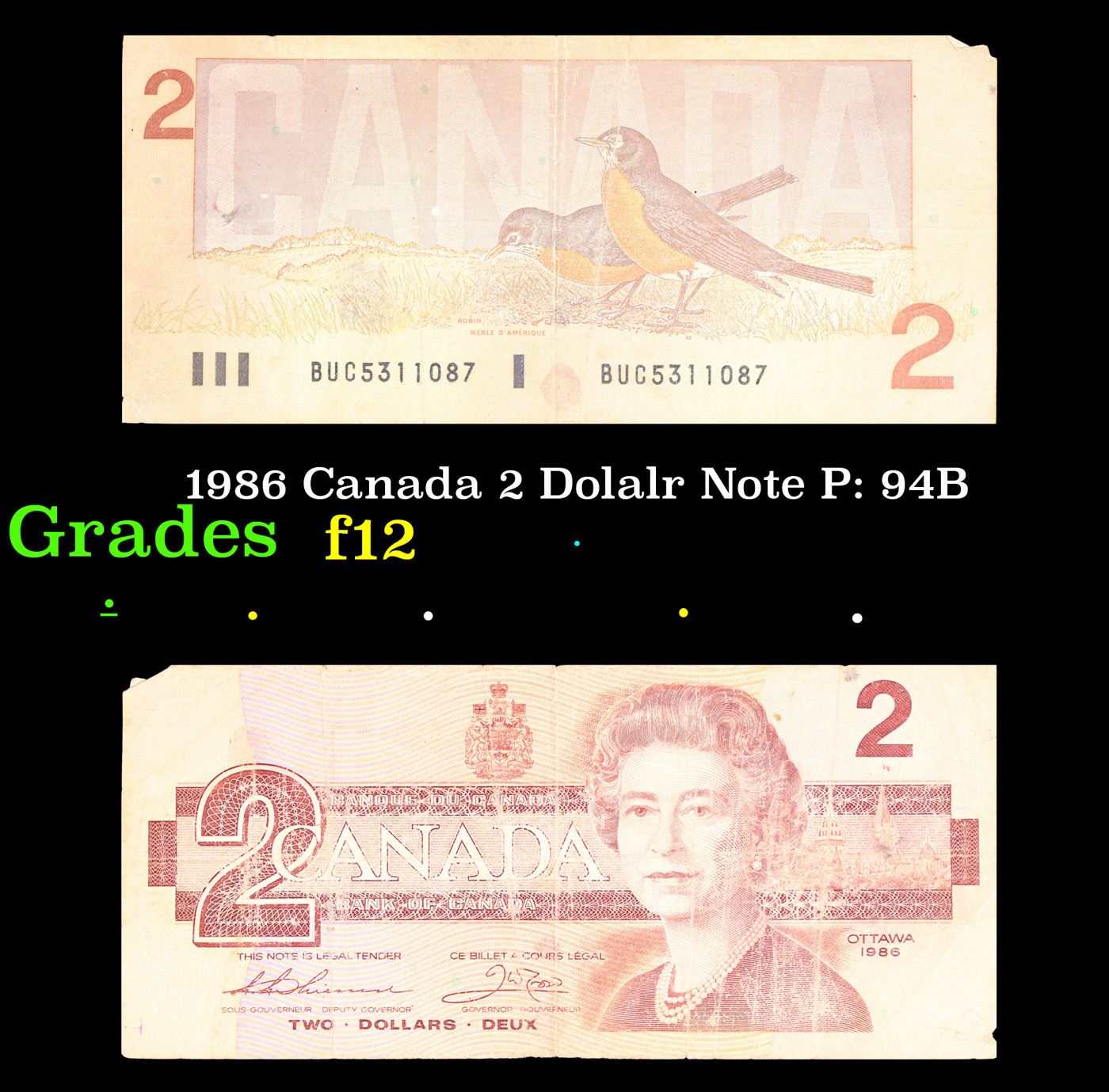 1986 Canada 2 Dolalr Note P: 94B Grades f, fine.