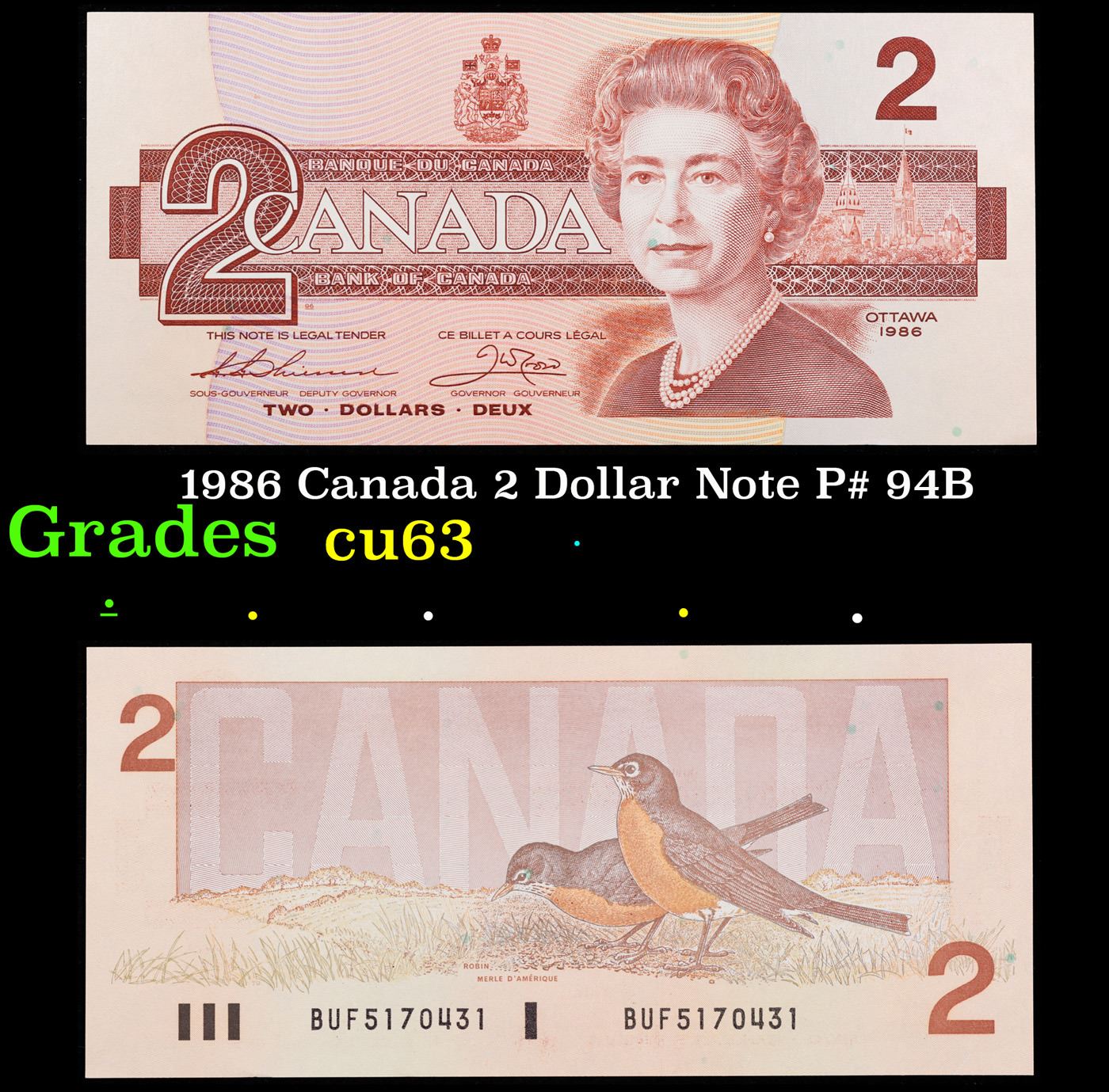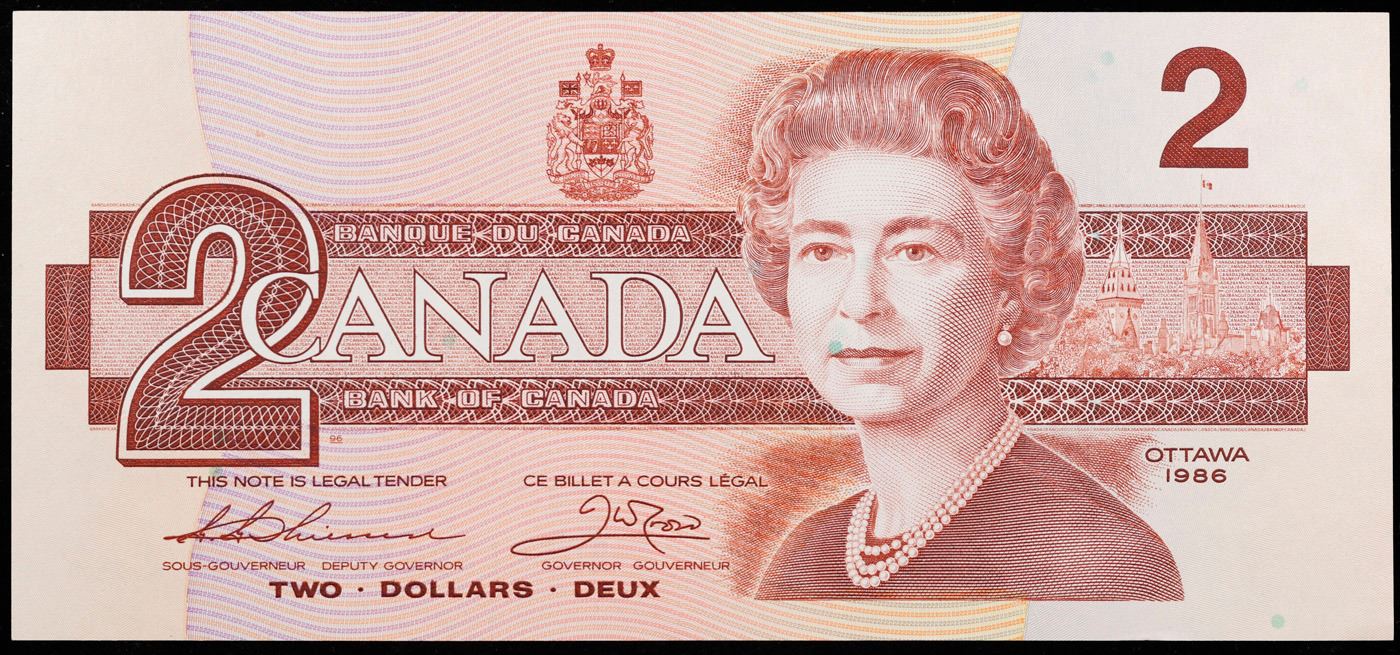 1986 Canada 2 Dollar Note P# 94B Grades Select CU.