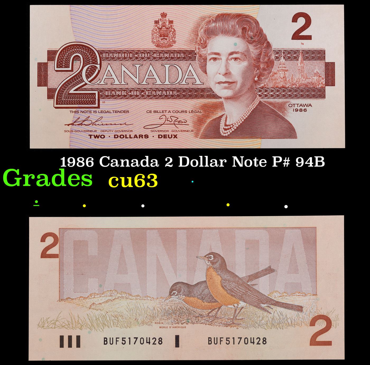 1986 Canada 2 Dollar Note P# 94B Grades Select CU.