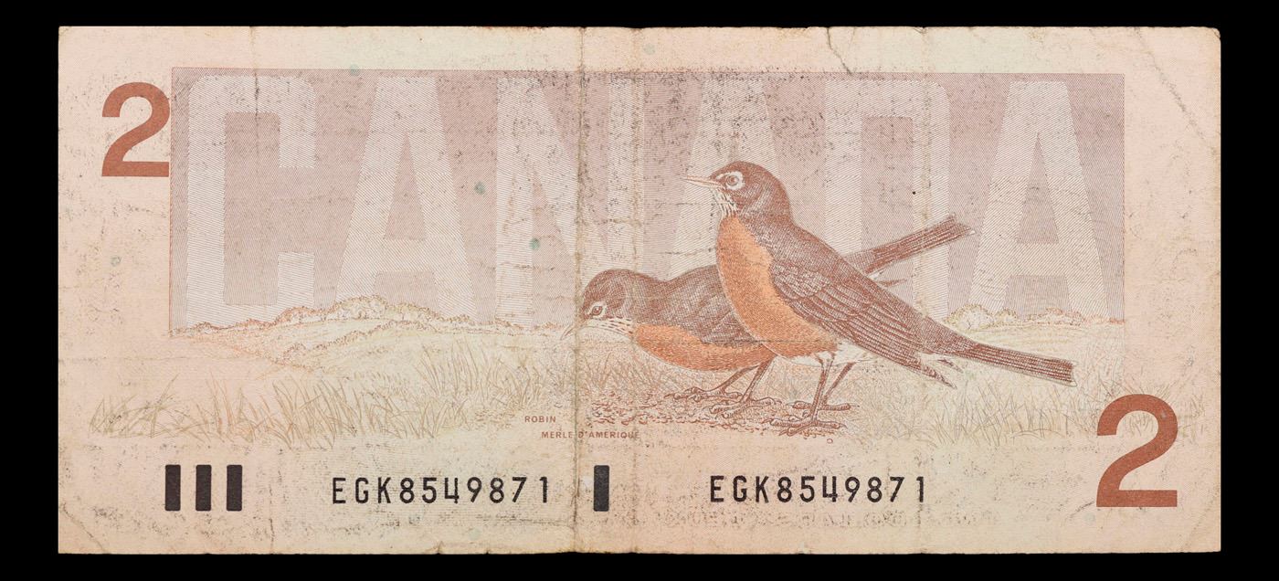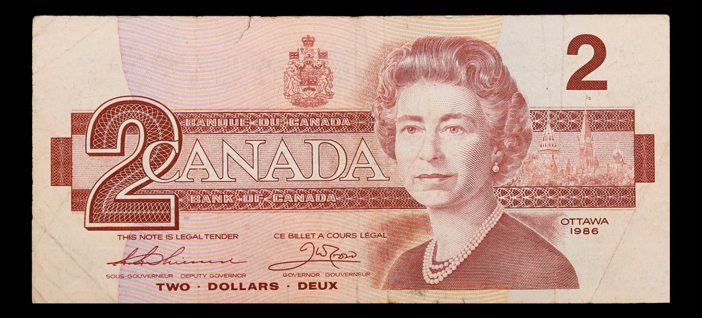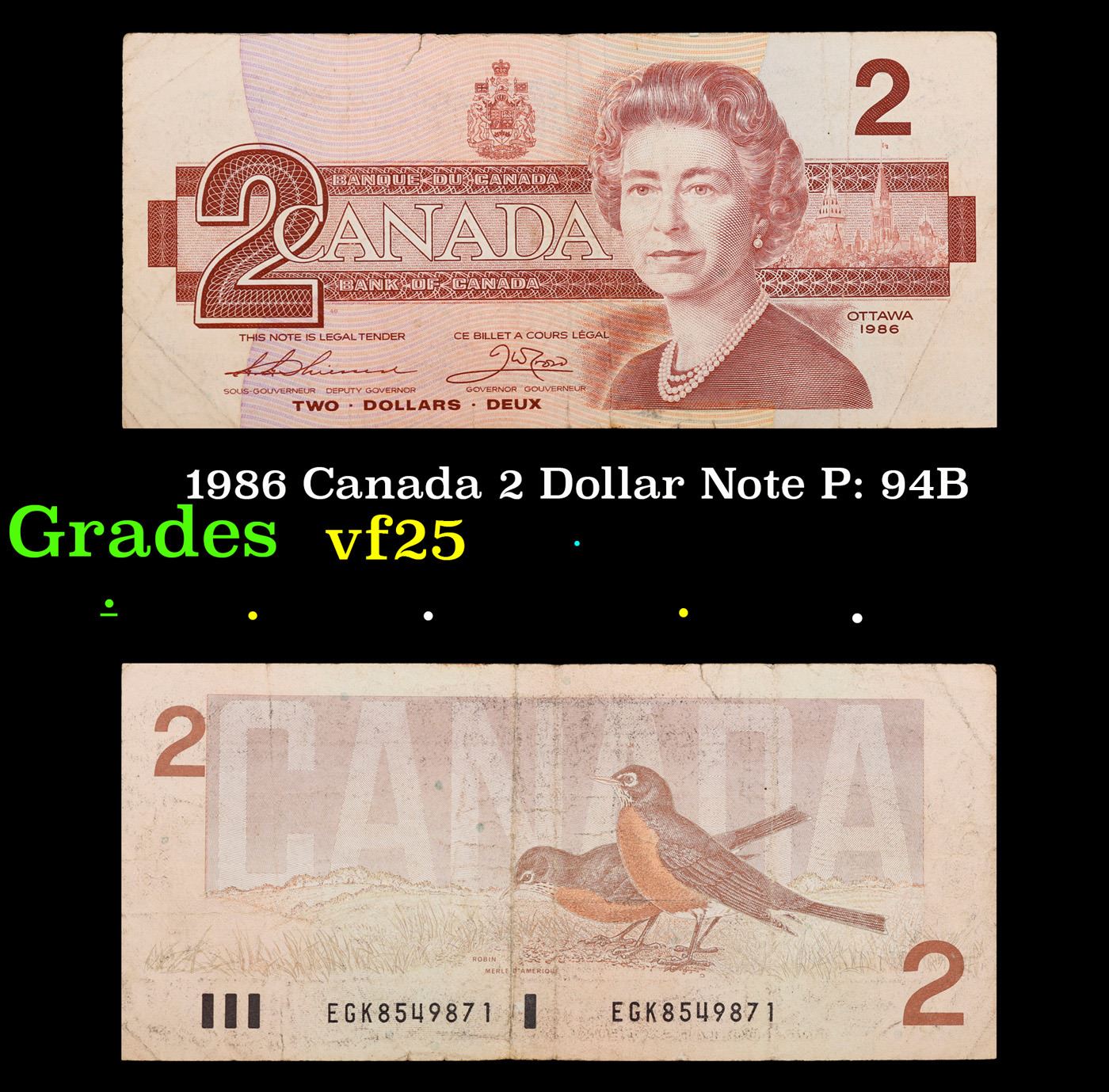 1986 Canada 2 Dollar Note P: 94B Grades vf+.