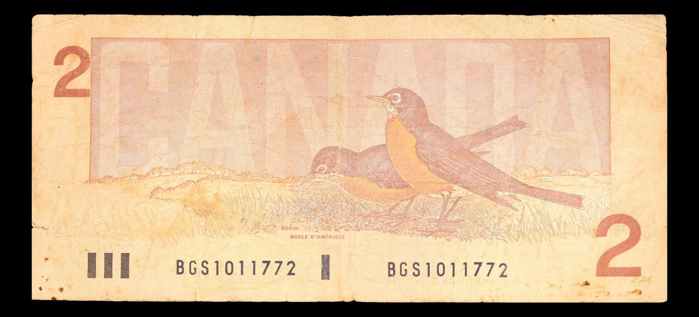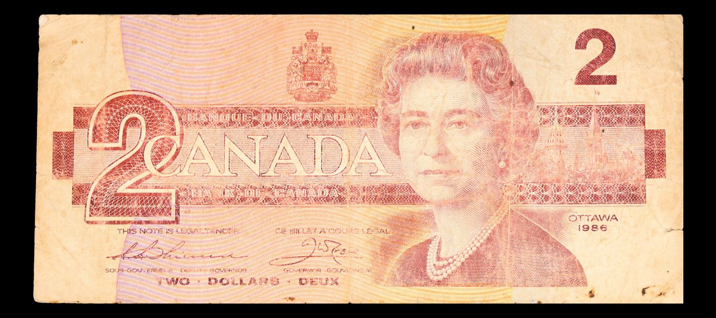 1986 Canada 2 Dollar Note P# 94B Grades vf+.