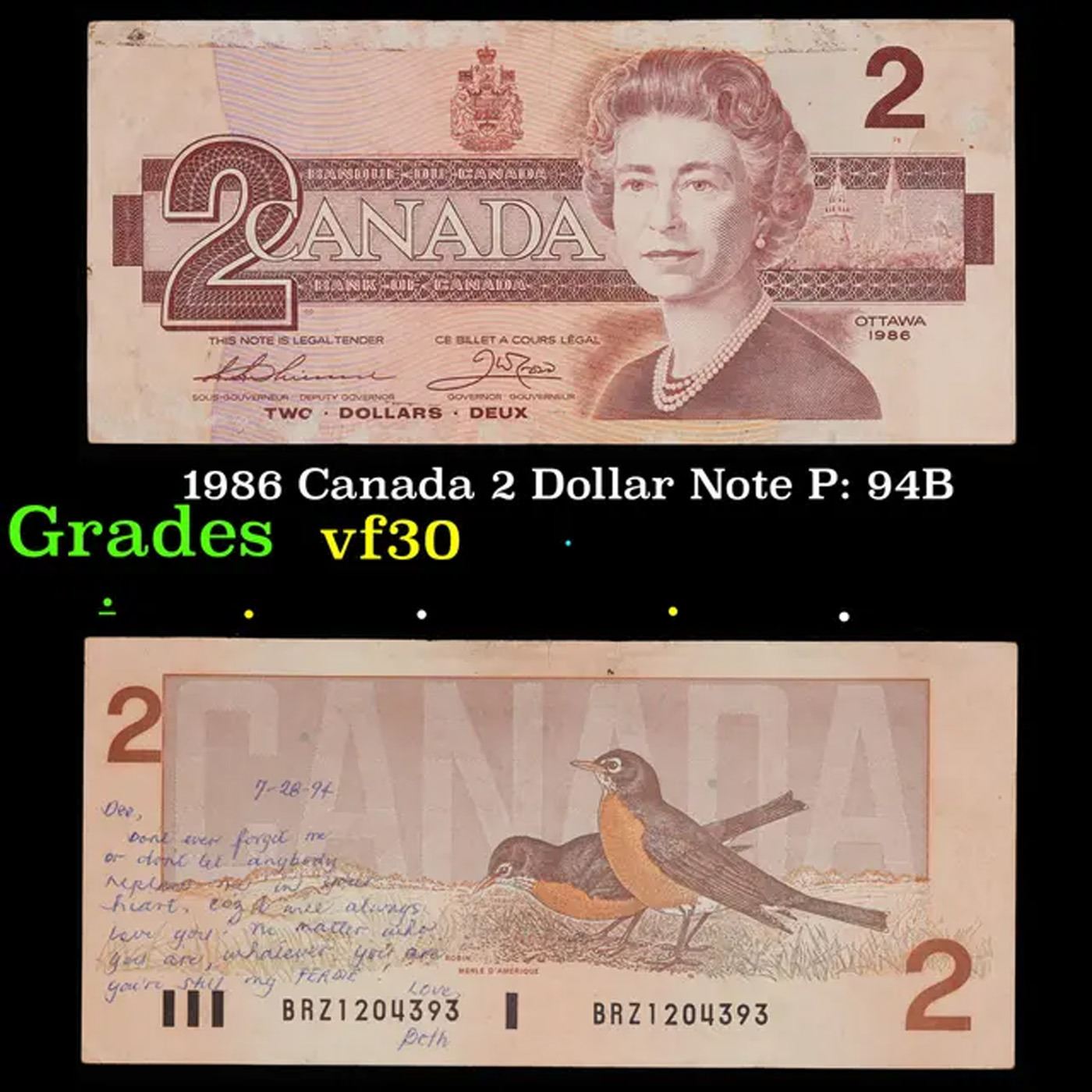 1986 Canada 2 Dollar Note P: 94B Grades vf++.