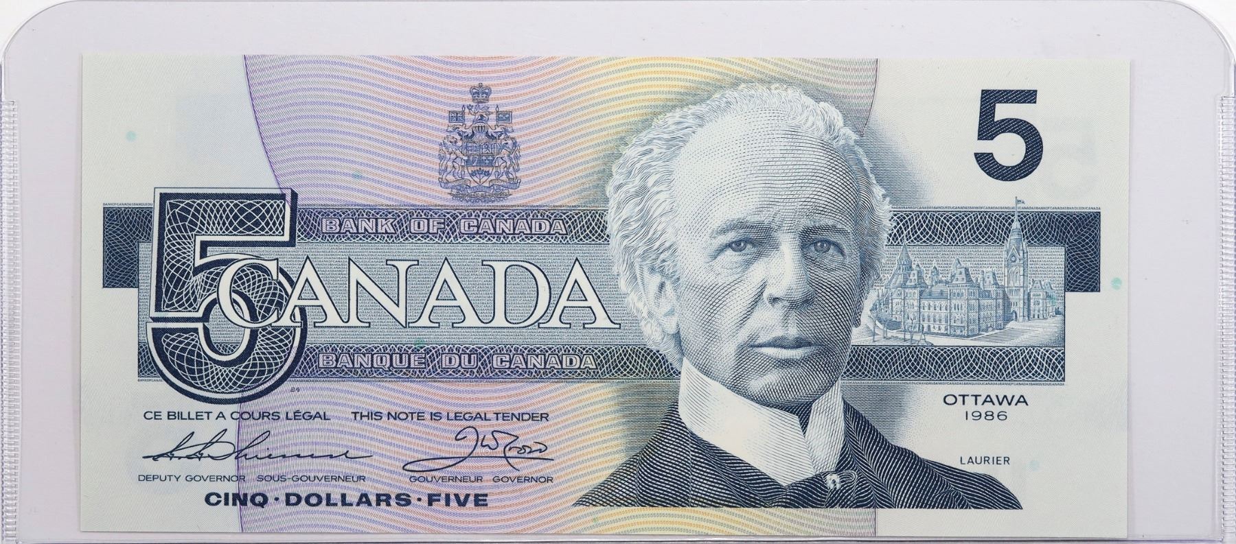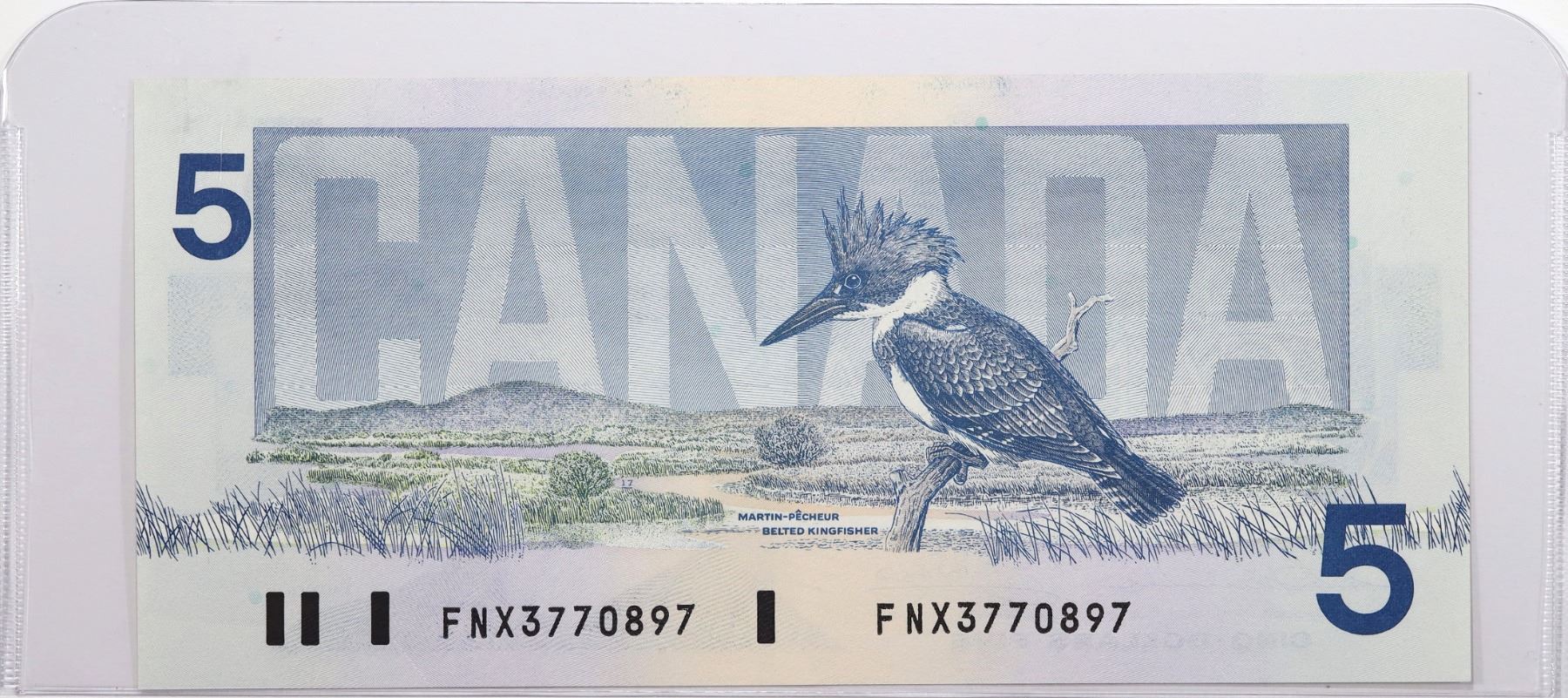 1986 Canada $5 BC-56bA; Thiessen-Crow, Replacement, FNX3770897; CUNC