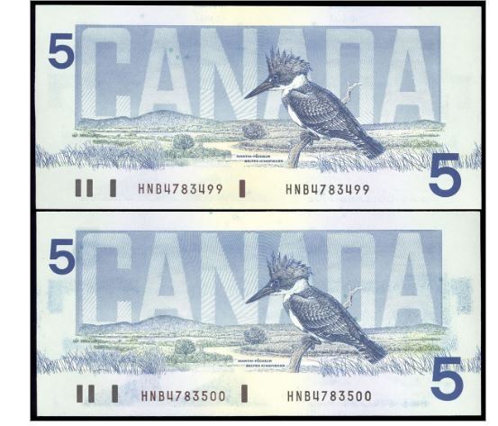 Consecutive Printing Error Knight-Dodge Series B Prefix HNB GUNC 65