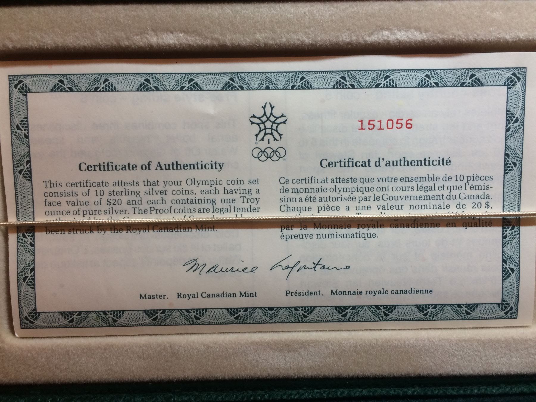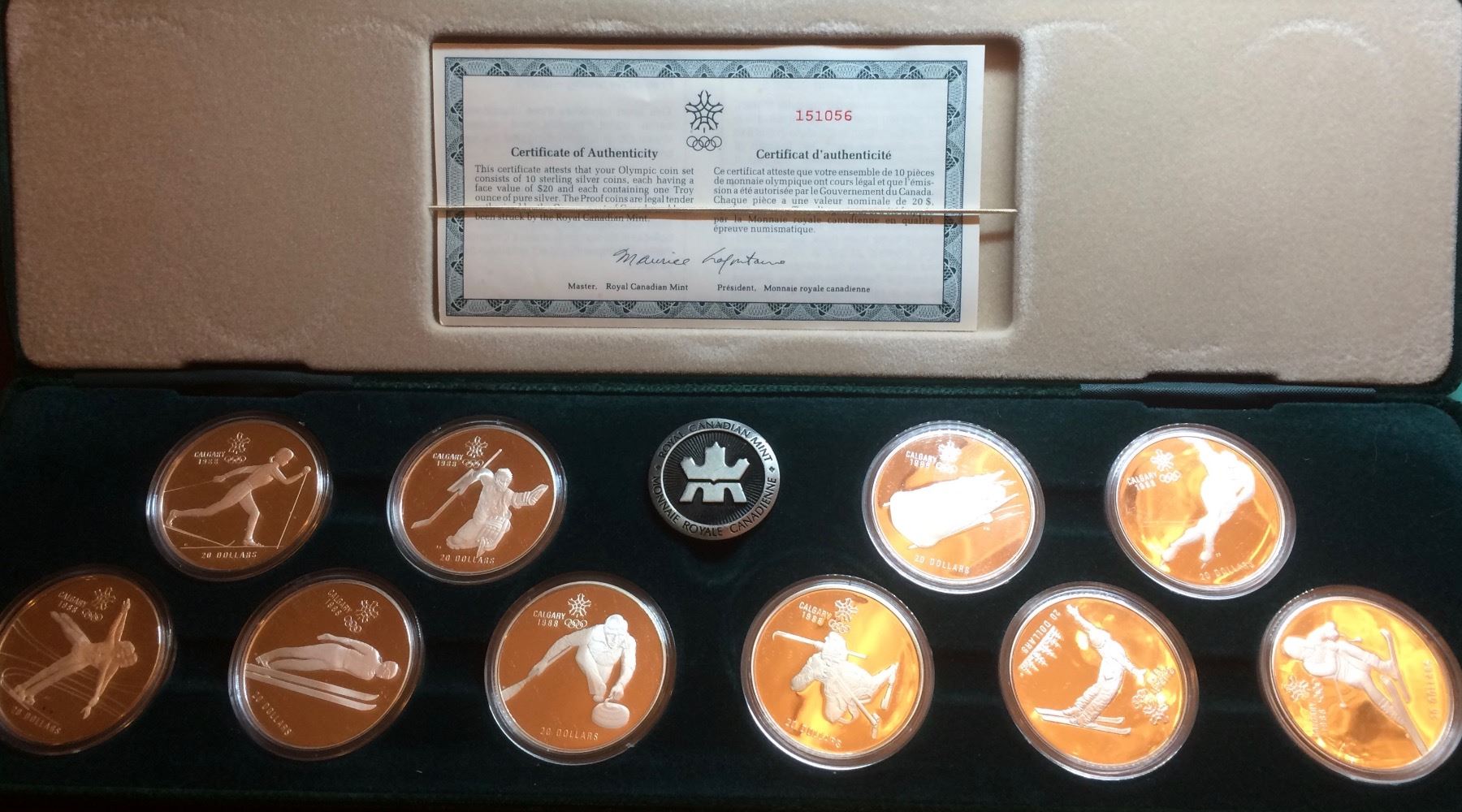 1986 Canada Calgary Olympic Sterling Coin Set- Lot of 10 Pieces.