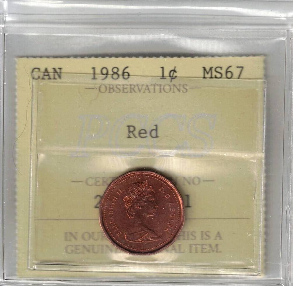 1986 Canada Small Cent MS-67 PCCS (Professional Coin Certification System)