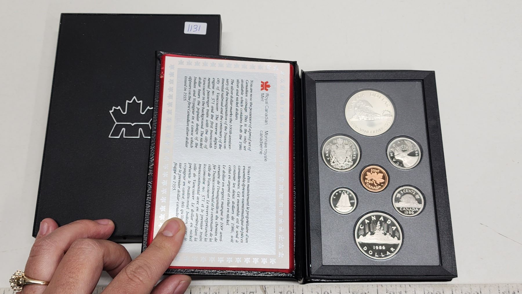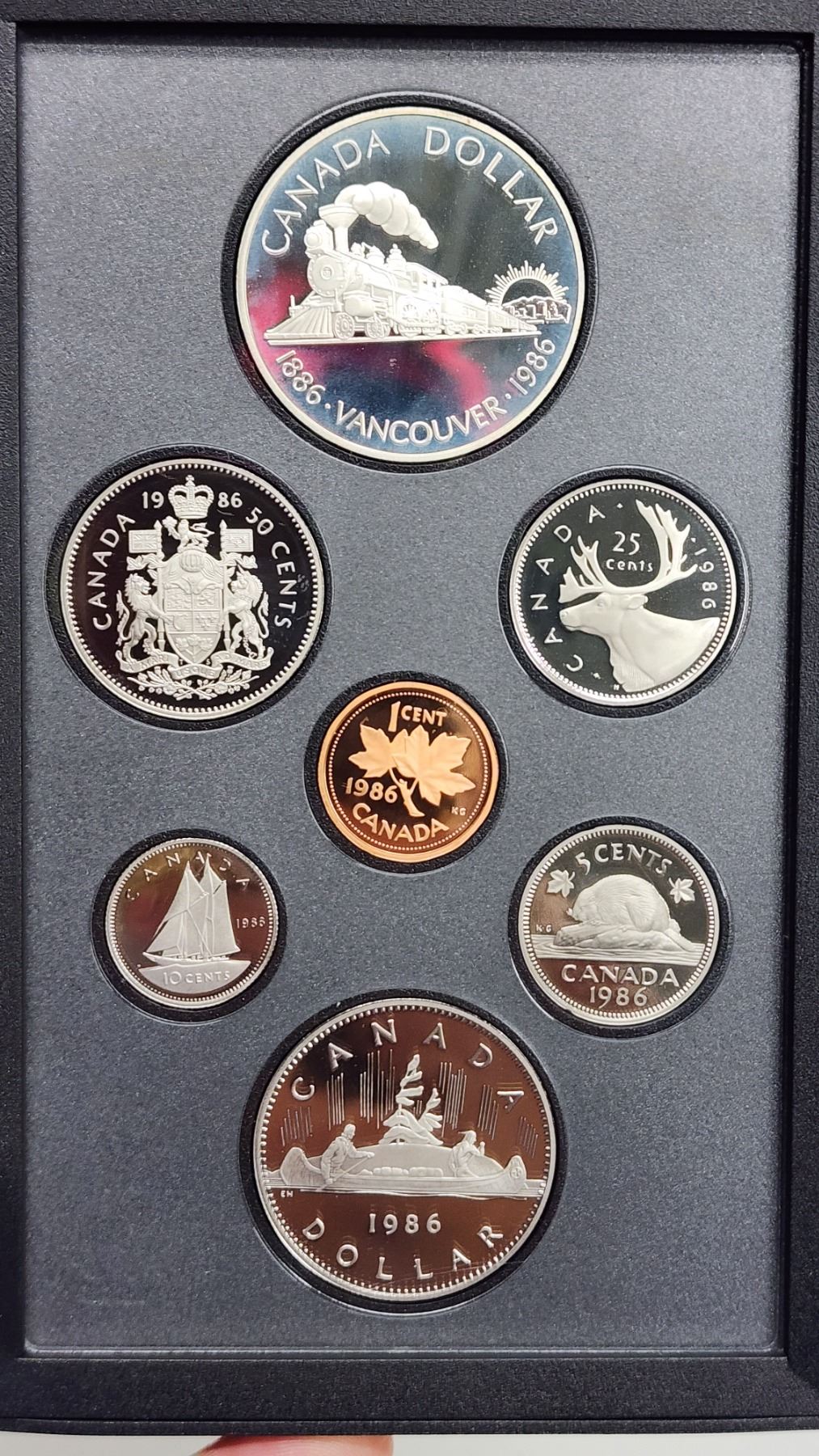 1986 Canadian coin proof set - 100th anniversary of the railroad of Vancouver, 50% silver dollar