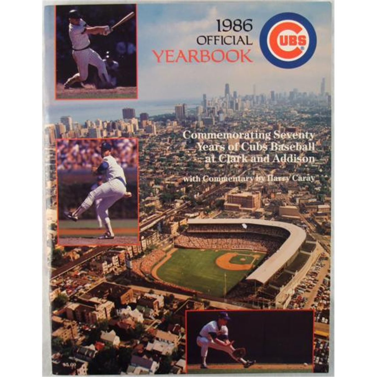 Don't miss out on Chicago Cubs 70 rich years of baseball. This yearbook is jammed pack full of Chicago Cubs information. It has everything from stats to the Cubs history, including players such Ryne Sandberg and Ernie Banks. The cover is a gorgeous picture of Wrigley field with the Chicago skyline in the background. Three pictures are shown on the cover, a player hitting, pitching and batting. The yearbook is "Commemorating Seventy Years of Cubs Baseball at Clark and Addison with commentary by Chicago legendary announcer Harry Caray. The yearbook is in great condition with a tiny rip on the corner (top left). This book is a perfect gift for any Cub fanatic.