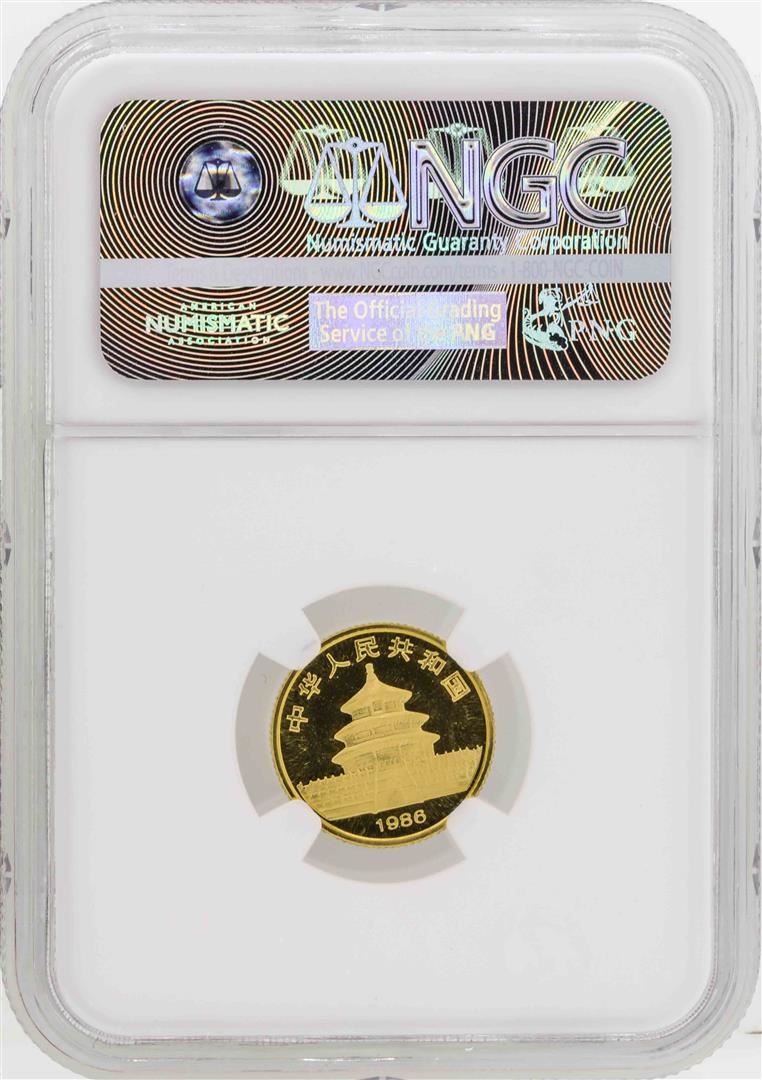 One 1986 China 1/10 oz. Panda 10 Yuan Gold Coin NGC MS69. NGC Certified.