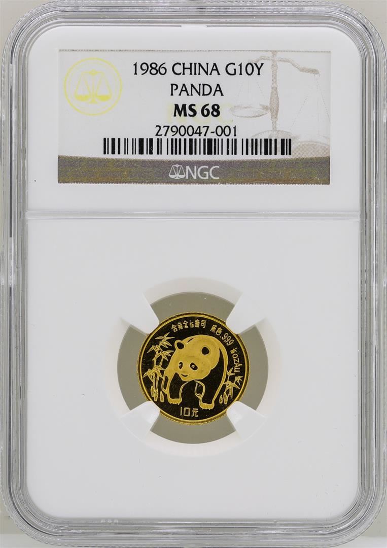 One 1986 China 10 Yuan Panda Gold Coin NGC MS68. NGC Certified.