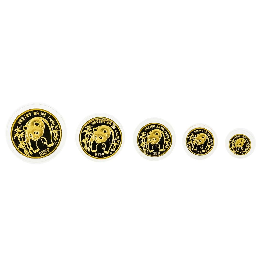 One 1986 China Panda Gold Coin Proof Set. Included in this set there are (1) 100 Yuan, (1) 50 Yuan, (1) 25 Yuan, (1) 10 Yuan, and (1) 5 Yuan gold coin.