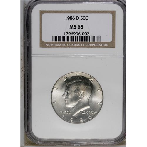 1986-D 50C MS68 NGC. A seemingly immaculate example of