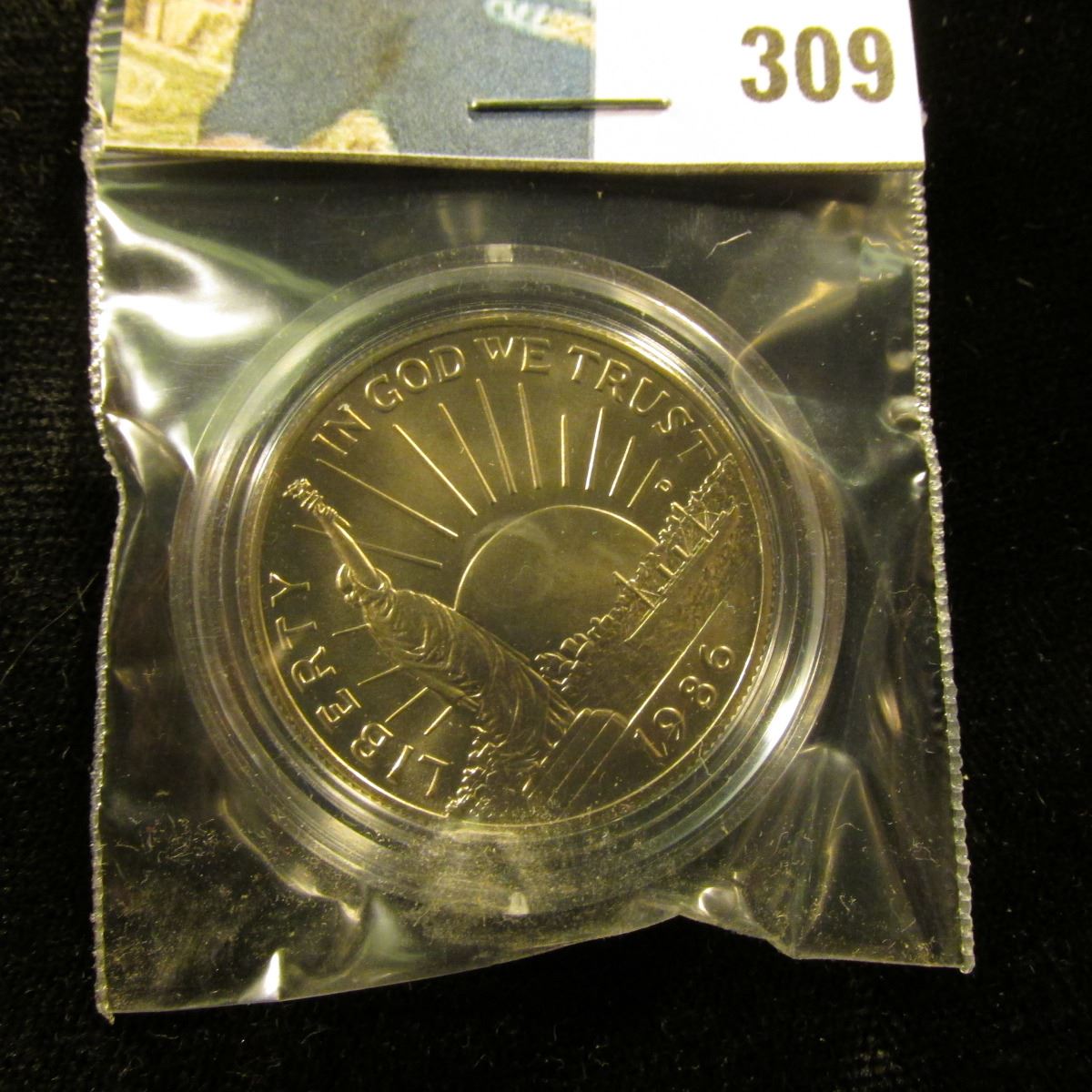 1986 D Gem BU 68+ Statue of Liberty Commemorative Half-Dollar, encapsulated.