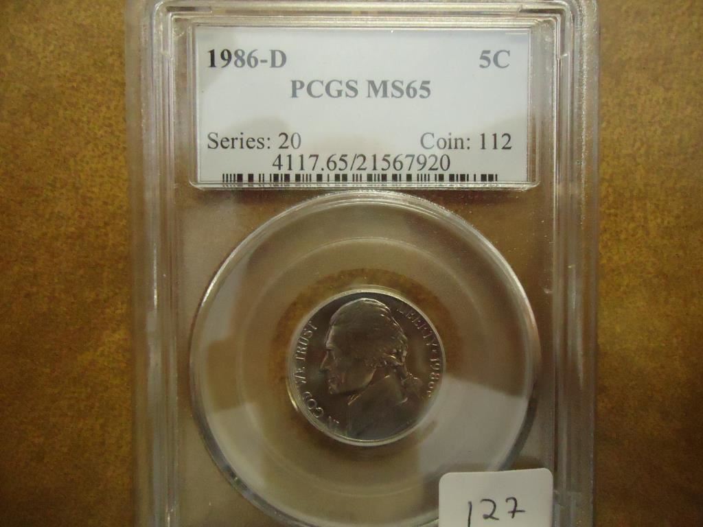 1986-D JEFFERSON NICKEL PCGS MS65 BLUEISH TONING
