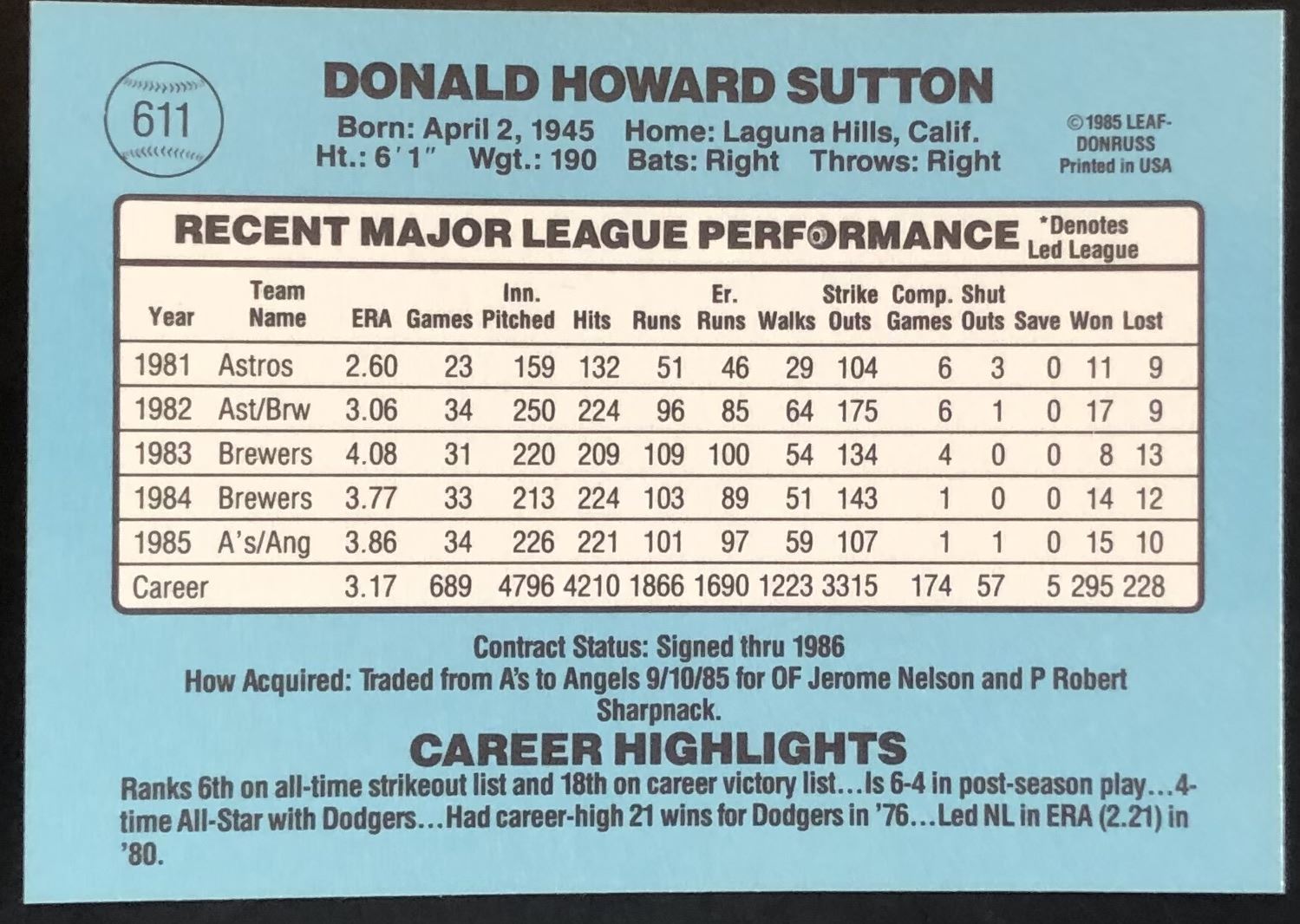Card #611 MLB, baseball, vintage, hall of fame