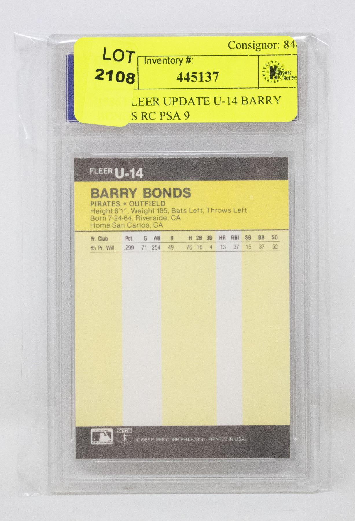 BARRY BONDS RC, 14X ALL-STAR, 7X NL MVP, 8X GOLD GLOVE, 3X HANK AARON AWARD, 762 CAREER HOME RUNS, 73 HOME RUNS IN ONE YEAR