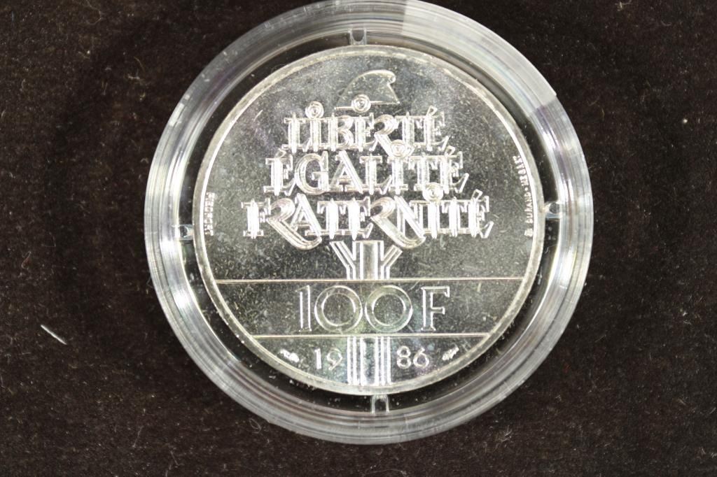 1986 FRANCE LIBERTY SILVER PIEDFORT 100 FRANCS BU