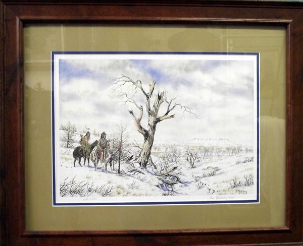 From the collection of Nick and Suzanne Nicholas. 1986 Framed & Matted Print by Jim Stuckenberg. This is a signed and numbered artist proof. Jim was born deaf in 1943. He has never let this stop Him from accomplishing his goals. He is a well rounded Western artist who''s art is collected worlwide. This Wonderful Print Has a visual measurement approx. 12''H x 17''W.