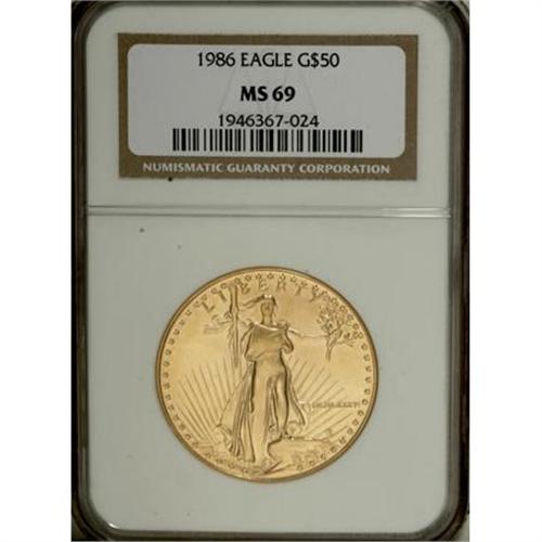 1986 G$50 One-Ounce Gold Eagle MS69 NGC