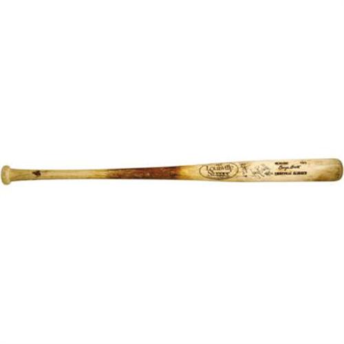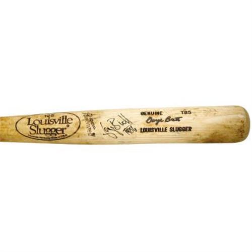 <B>1986 George Brett Game Used Bat.</B></I> Dating from the eleventh of thirteen consecutive All-Star seasons comes this signature model Louisville Slugger T85, exhibiting heavy use from the Kansas City Royals Hall of Famer. Grain separation on the back of the barrel tells the story of brutal use, with many ball and stitch marks clearly evident. As one would expect from Brett, a considerable coating of pine tar appears at mid-handle. Number "5" is markered for identification on knob end. A black sharpie signature from Brett (10/10) includes a "1986" notation, dating the bat to the end of the 1983-86 labeling period. Weight and length of twenty-nine and a half ounces and thirty-four and a half inches are correct for Brett's specifications. Uncracked. Graded GU8.5. <I>LOA from Taube & Malta. LOA from PSA/DNA (autograph). LOA from James Spence Authentication (autograph).</B></I><BR><BR><b>Shipping:</b> Bats, Clubs, Sticks, Swords, Rif (<a target="_blank" href="http://www.heritageauctions.com/common/shipping.php">view shipping information</a>)
