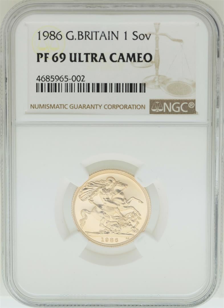 One 1986 Great Britain Sovereign Gold Coin NGC PF69 Ultra Cameo . NGC Certified.