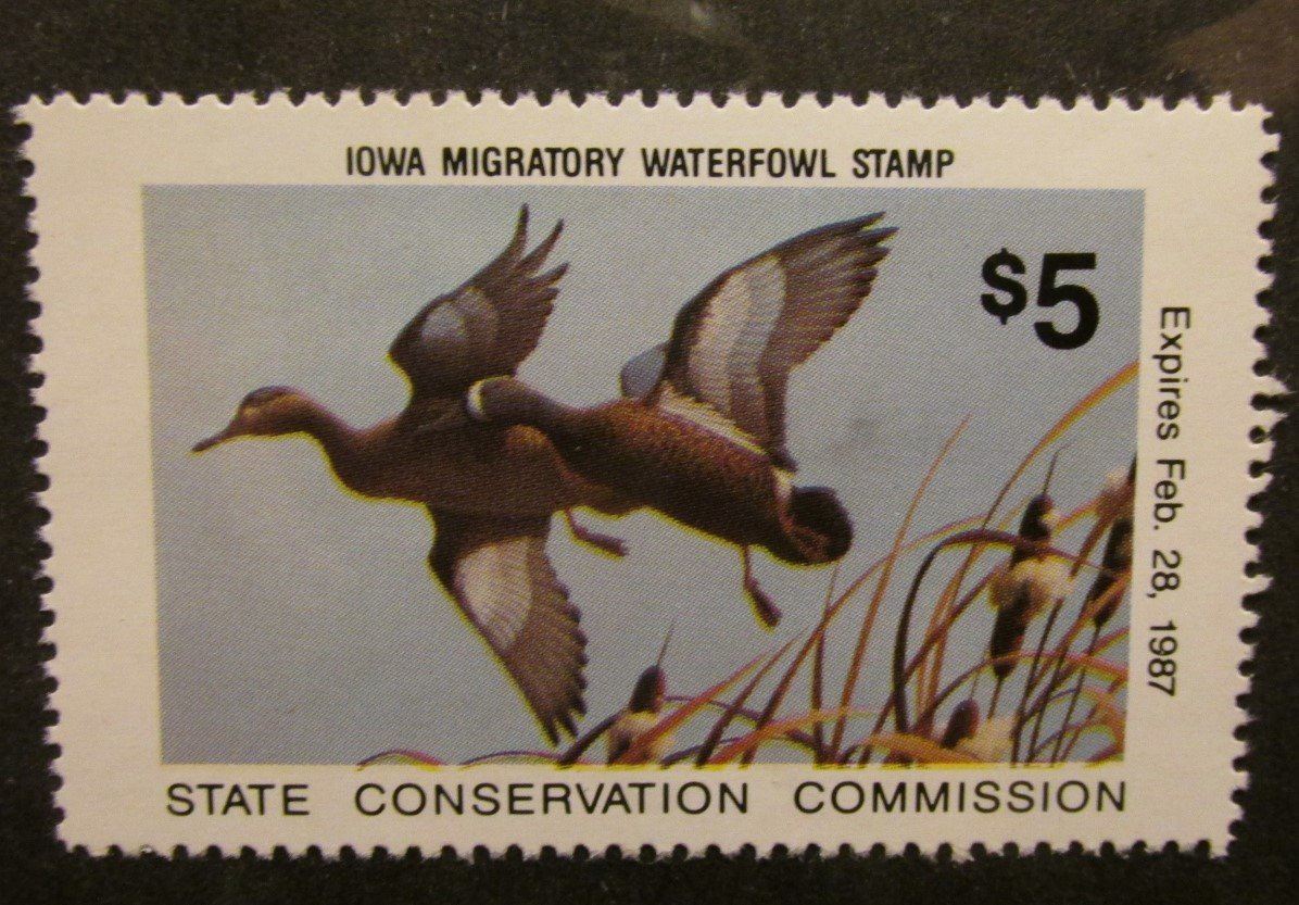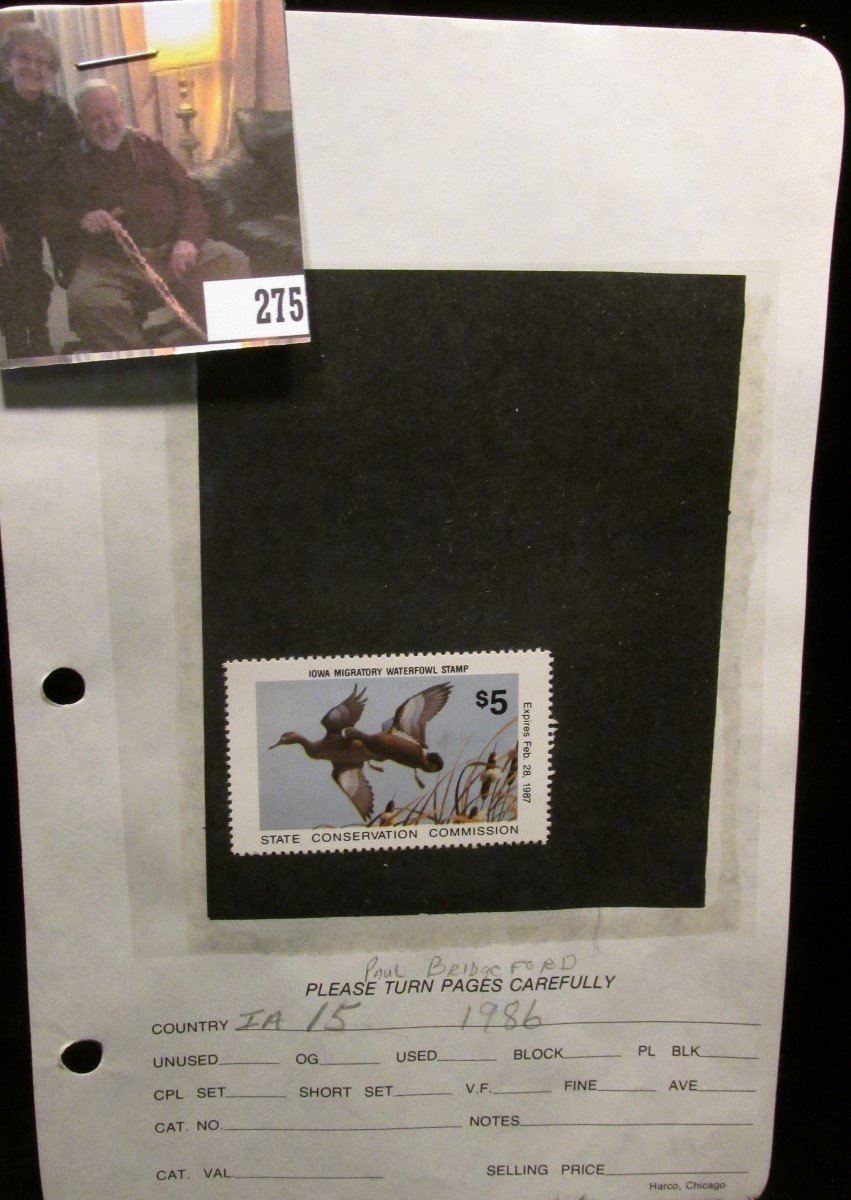 1986 IA15 Iowa $5 Migratory Waterfowl Stamps. Unsigned and unused, excellent condition.