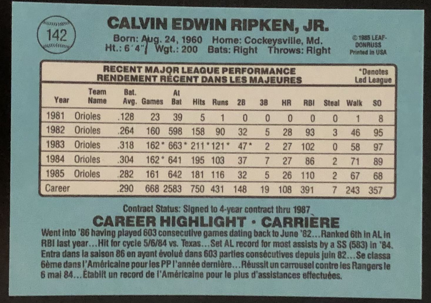Card #142 Donruss, MLB, baseball, vintage, hall of fame
