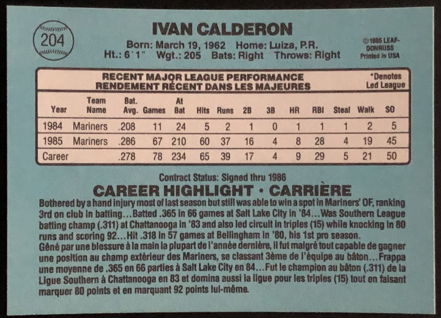 Card #204 Donruss, vintage, baseball, MLB, rookie