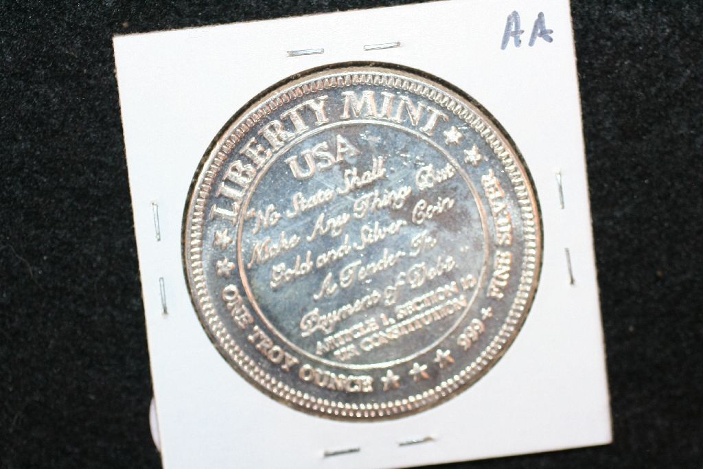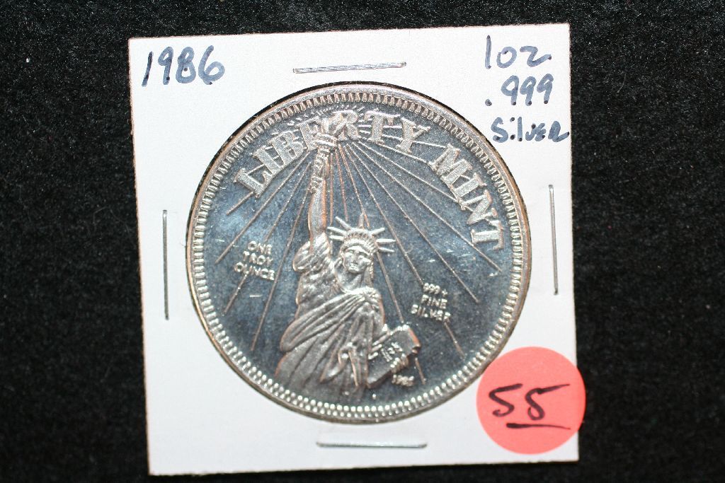 1986 Liberty Mint Silver Round; 999+ Fine Silver 1 Oz.