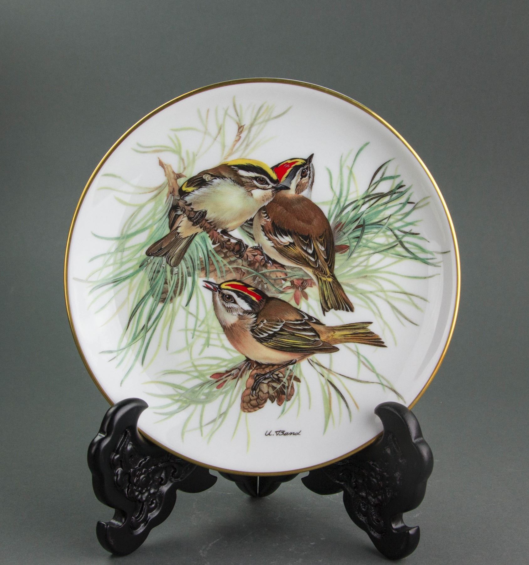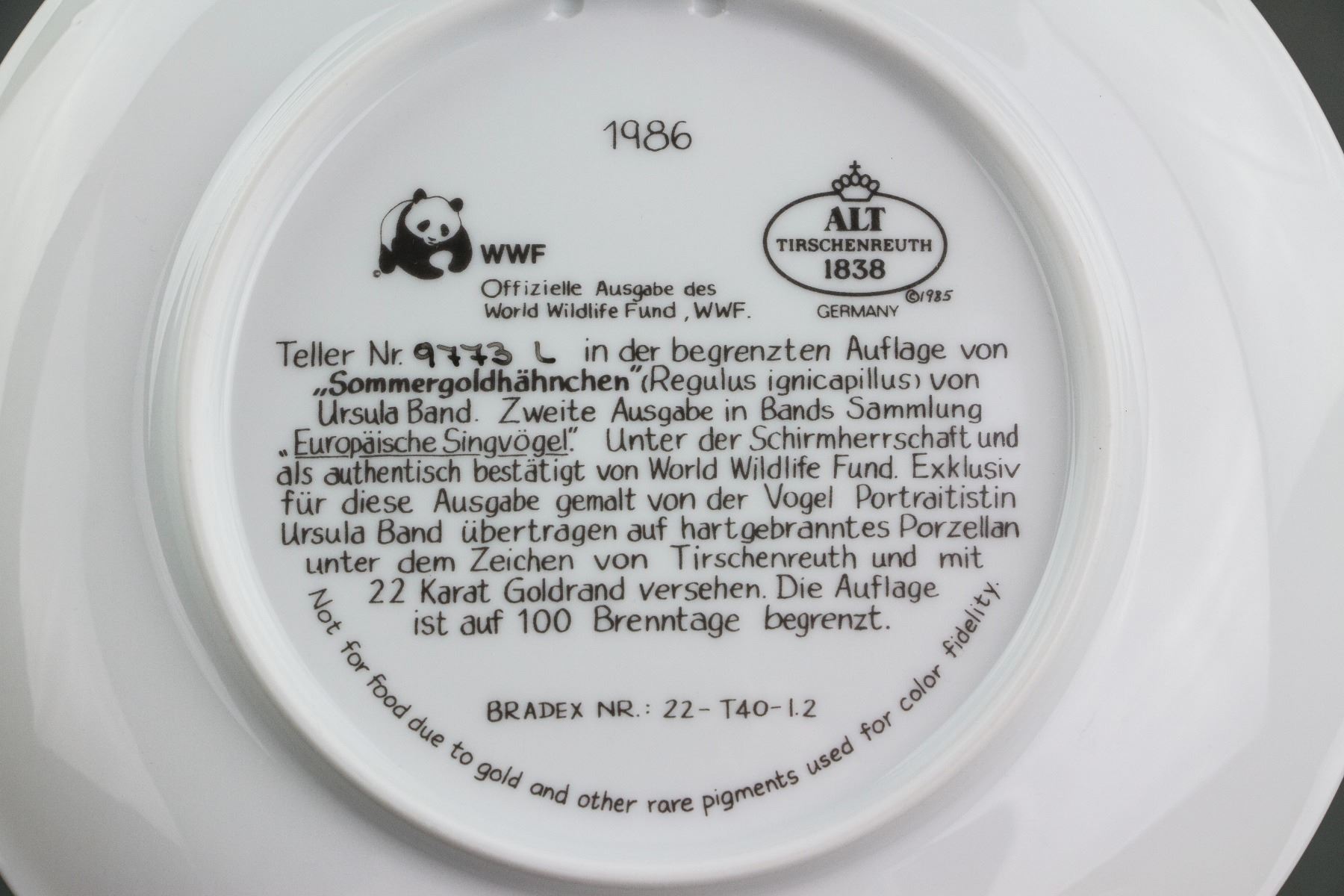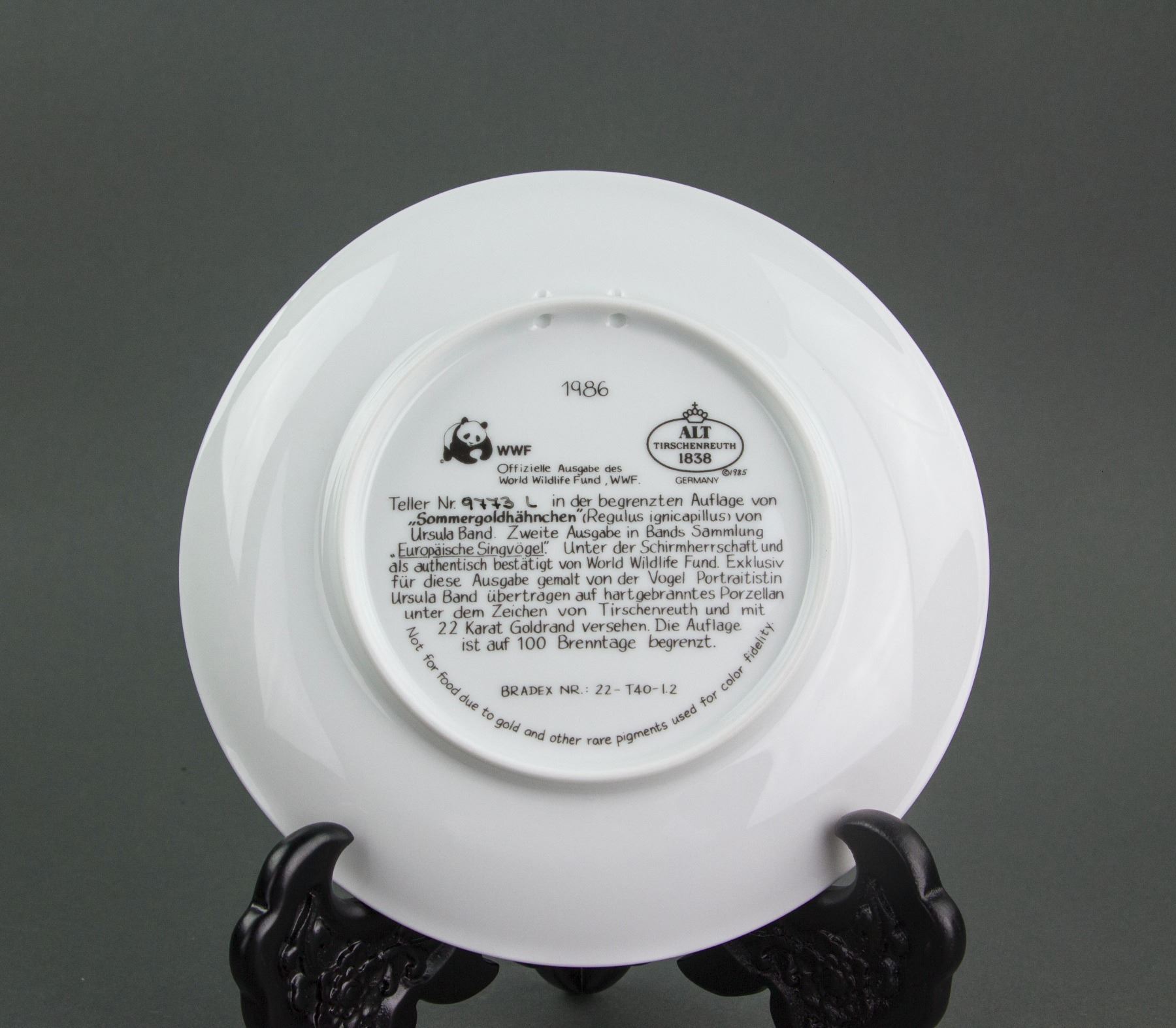 1986 Limited Edition World Wildlife Fund porcelain plate; painted with Tirschenreuth Firecrest; signed by artist Ursula Band; German information on base; H: 2cm , D: 19.5cm, 289 grams