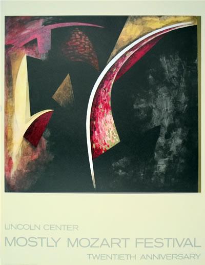 Reference #: ULLC1028 Artist Name: Murray, Judith Title: Mostly Mozart Medium: Serigraph Edition Size: 1000 Year: 1986 Paper Size: 43.5 x 33.25 inches Image Size: 29 x 31.75 inches Condition: A: Mint Notes: Original exhibition poster designed by the artist for the Lincoln Center Poster Program in 1986. Limited edition serigraph, unsigned and not numbered, with full margins.