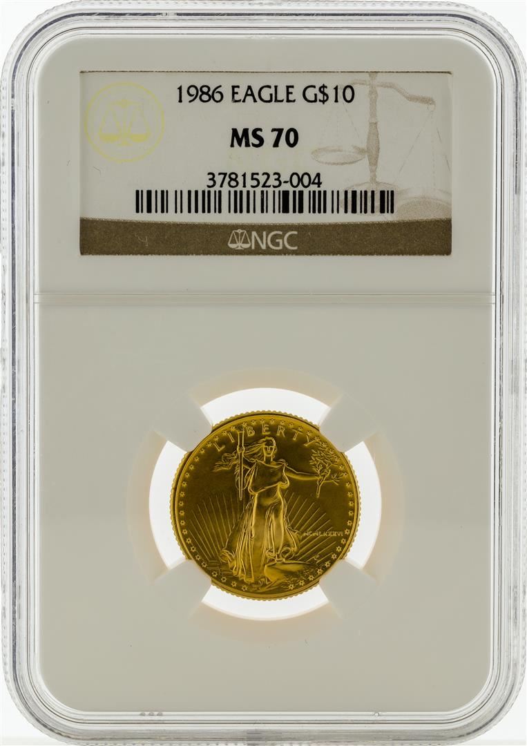 One 1986 NGC MS70 $10 Eagle Gold Coin. NGC Certified.