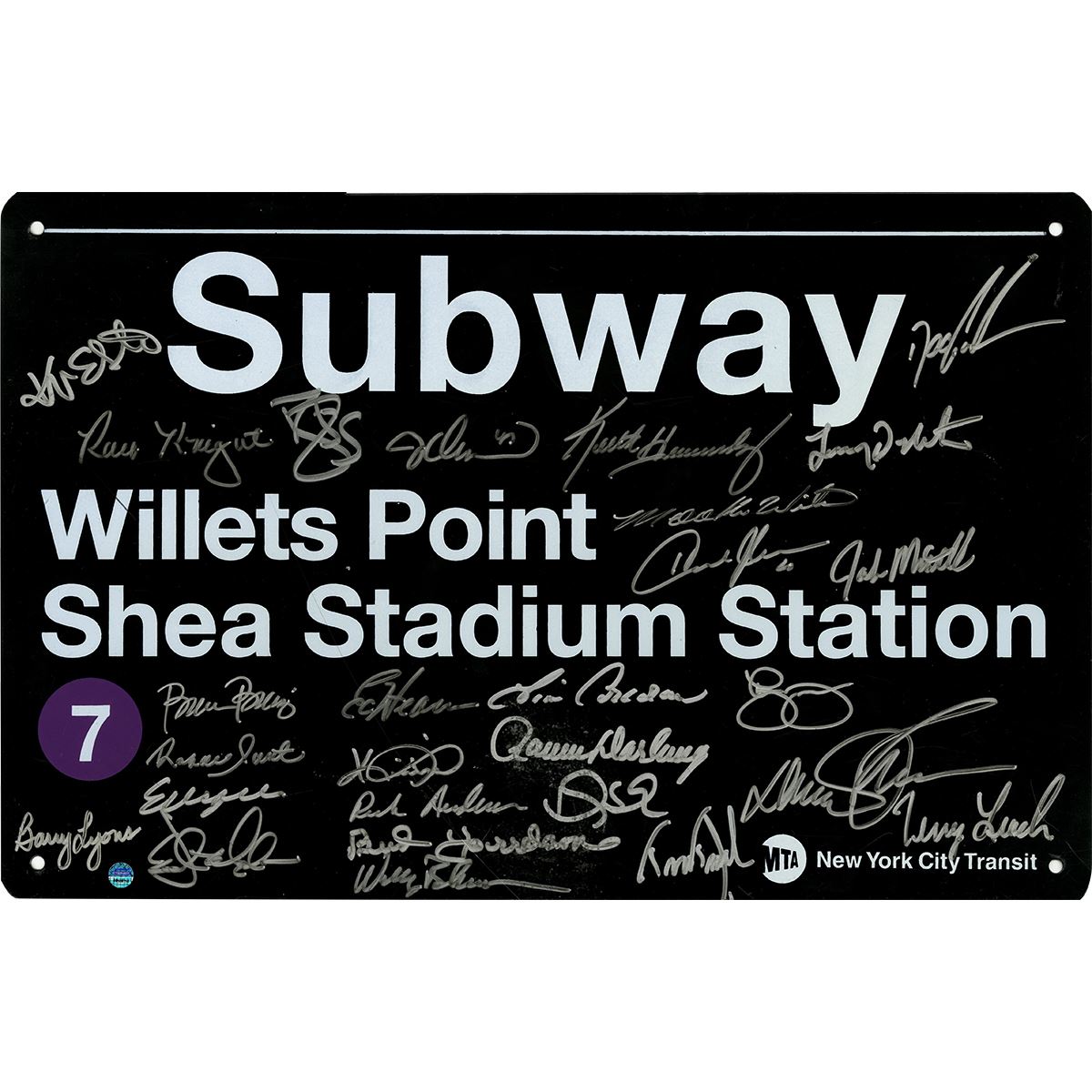 1986 New York Mets Team Signed NYC Metal Subway Sign - 7 Train Shea Stadium Station/Willets Point (27 Signatures)(Imperfect)